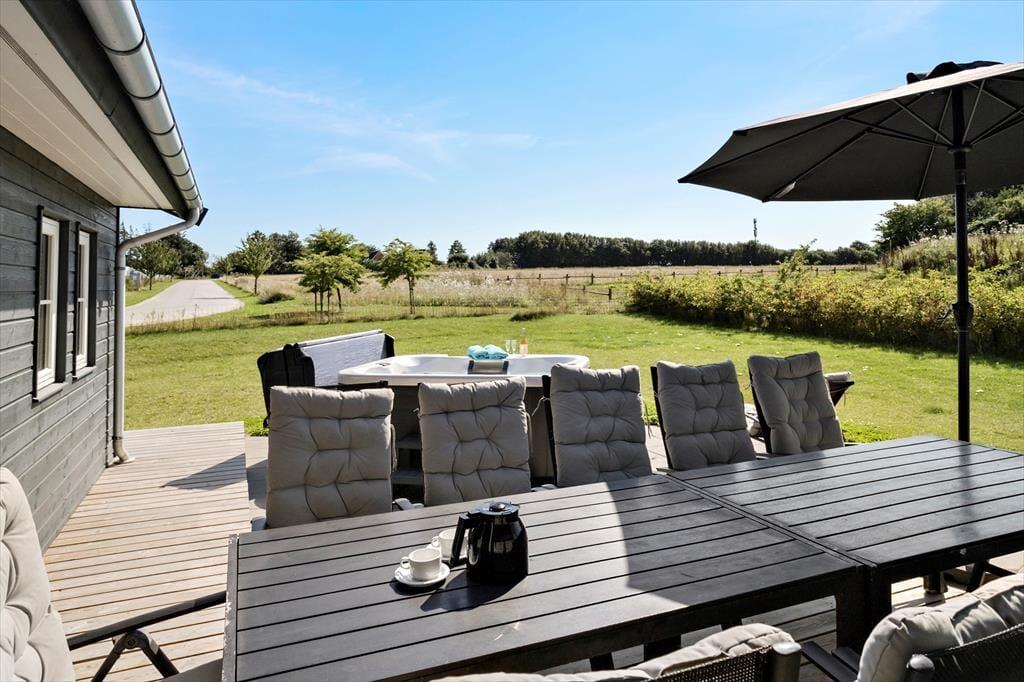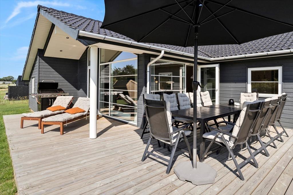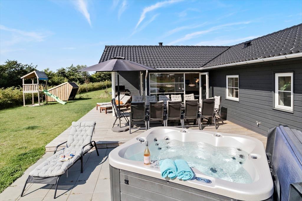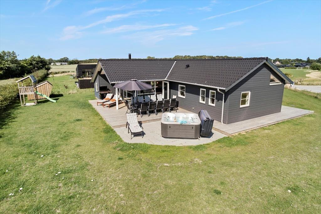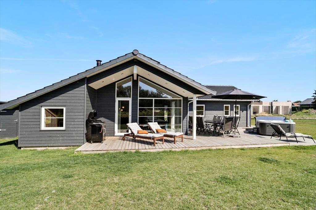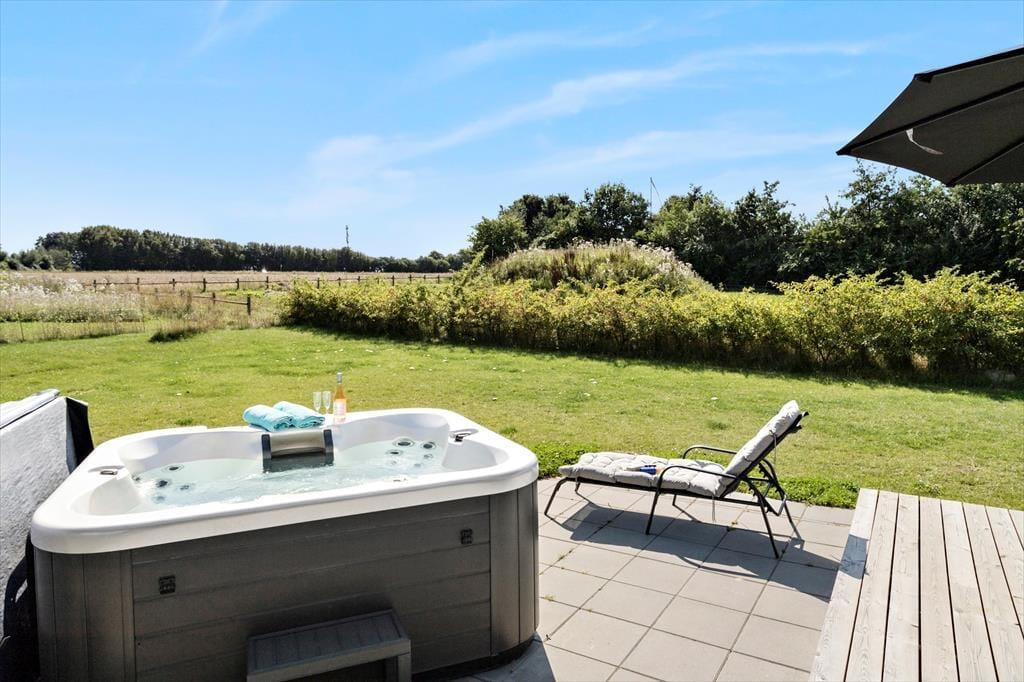 Auch unter freiem Himmel überzeugt dieses Urlaubsdomizil mit vielen Möglichkeiten. Rund um das Haus erstreckt sich eine Terrasse, auf der Gartenmöbel, Liegestühle und ein Sonnenschirm bereit stehen. Dank des hauseigenen Grills werden Sie sicher häufig auf der Terrasse essen. Der Garten bietet angenehm viel Platz zum Spielen. Das ganze Jahr hindurch steht der beheizbare Außenwhirlpool zur Verfügung. Lediglich 400 Meter trennen Sie von einem herrlichen Sandstrand, der zu unzähligen Bädern und schönen Strandspaziergängen einlädt. Im Garten des Hauses steht eine Schutzhütte bereit. Nicht nur Ihren Kindern wird eine Nacht unter dem dunklen Sternehimmel viel Spaß bereiten. Drei Klappmatratzen hierfür sind im Schuppen untergebracht. Die kleinsten Urlauber freuen sich außerdem über Spielturm mit Rutsche und eine Sandkiste. Die Grundstückseinfahrt bietet Platz für bis zu sechs Pkws. Eine Lademöglichkeit für ein E-Auto ist vorhanden.