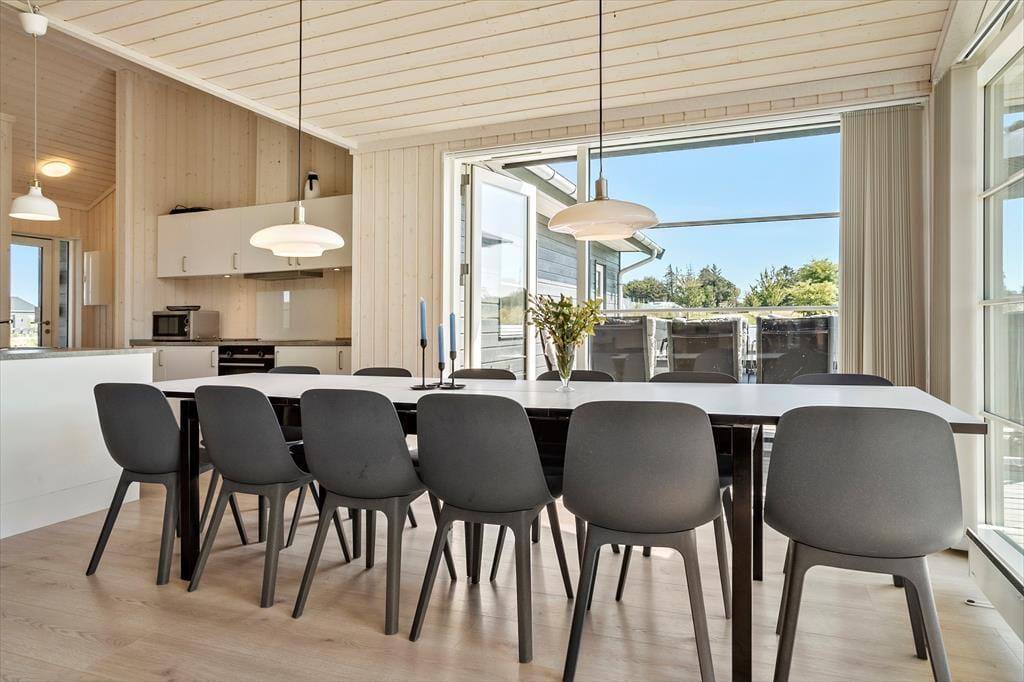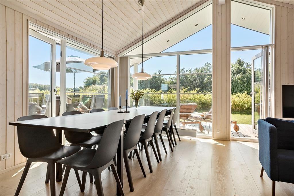 In direkter Verbindung zur Küche treffen Sie auf den großen Essplatz und eine gemütliche Sofagruppe, in der Sie einen schönen Tag am Strand mit viel Gemütlichkeit und einem guten Film ausklingen lassen können. Der Fernseher hat Chromecast und ein TV-Paket mit dänischen, deutschen, schwedischen und norwegischen Sendern.