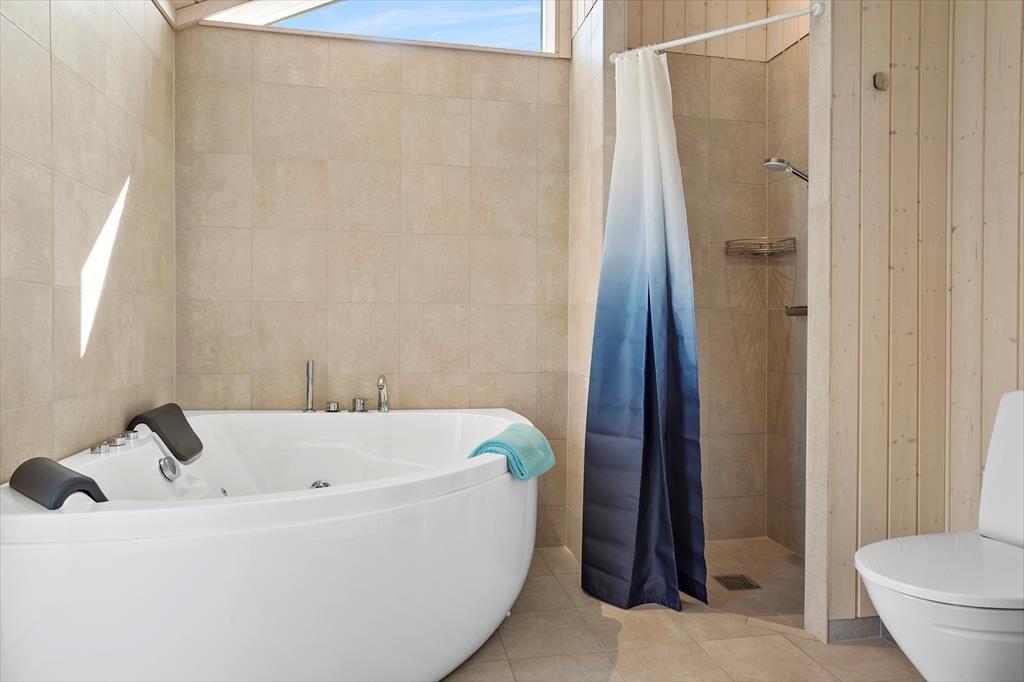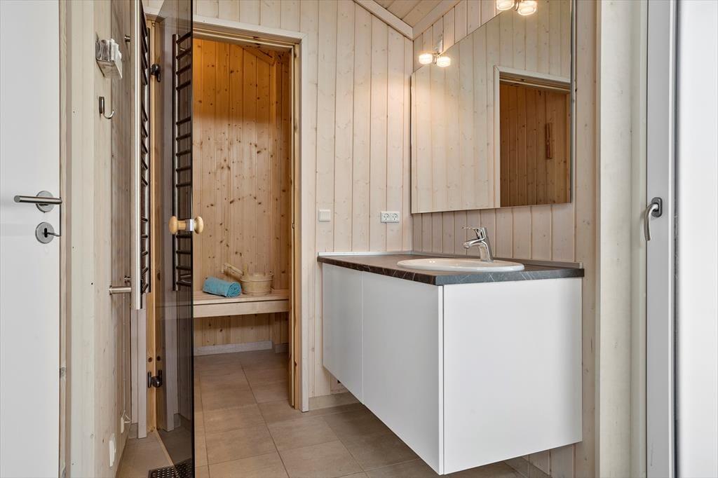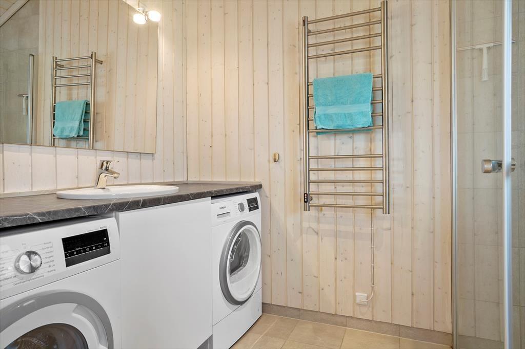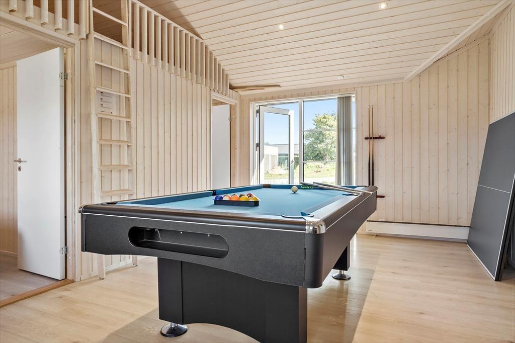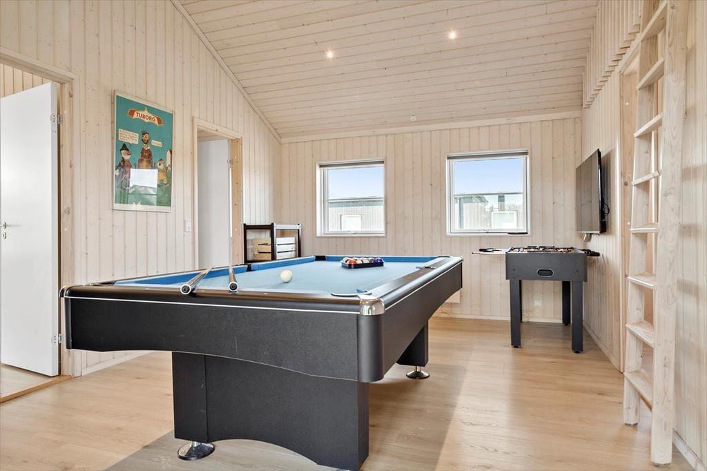 Der Fernseher ist drehbar, sodass die Schlafnische auch zur gemütlichen Fernsehecke für Kinder umfunktioniert werden kann. Eine kostenlos nutzbare Internetverbindung mit einer Geschwindigkeit von 100/100 Mbit ist vorhanden. Diverse vergnügte Stunden verleben Sie sicher auch im Aktivitätsraum, in dem Sie nach Herzenslust Billard, Tischtennis oder Tischkicker spielen können. Ein weiterer TV mit Chromecast und einem TV-Paket mit dänischen, deutschen, schwedischen und norwegischen Sendern steht Ihnen hier ebenfalls zur Verfügung. Die beiden Badezimmer bieten jeweils ein WC, eine Dusche und einen Handtuchtrockner. Eines der Bäder verwöhnt zusätzlich mit einem Whirlpool und einer Sauna. Eine Außendusche sorgt anschließend für eine willkommene Erfrischung. Das andere Badezimmer beinhaltet hingegen eine Waschmaschine und einen Wäschetrockner, sodass Sie sich je nach Wunsch jeden Tag auf frische, saubere Handtücher freuen können.