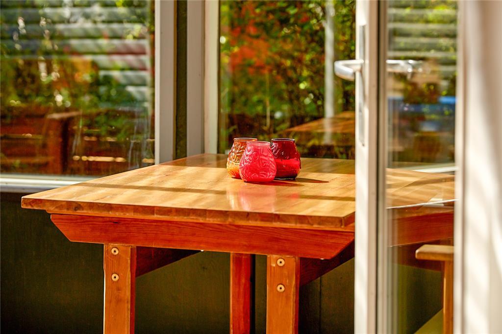 Draußen gibt es eine schöne überdachte Terrasse mit einem geschlossenen Teil. Außerdem gibt es einen gemütlichen Sonnenhof, wo Sie ganz ungestört sitzen können.