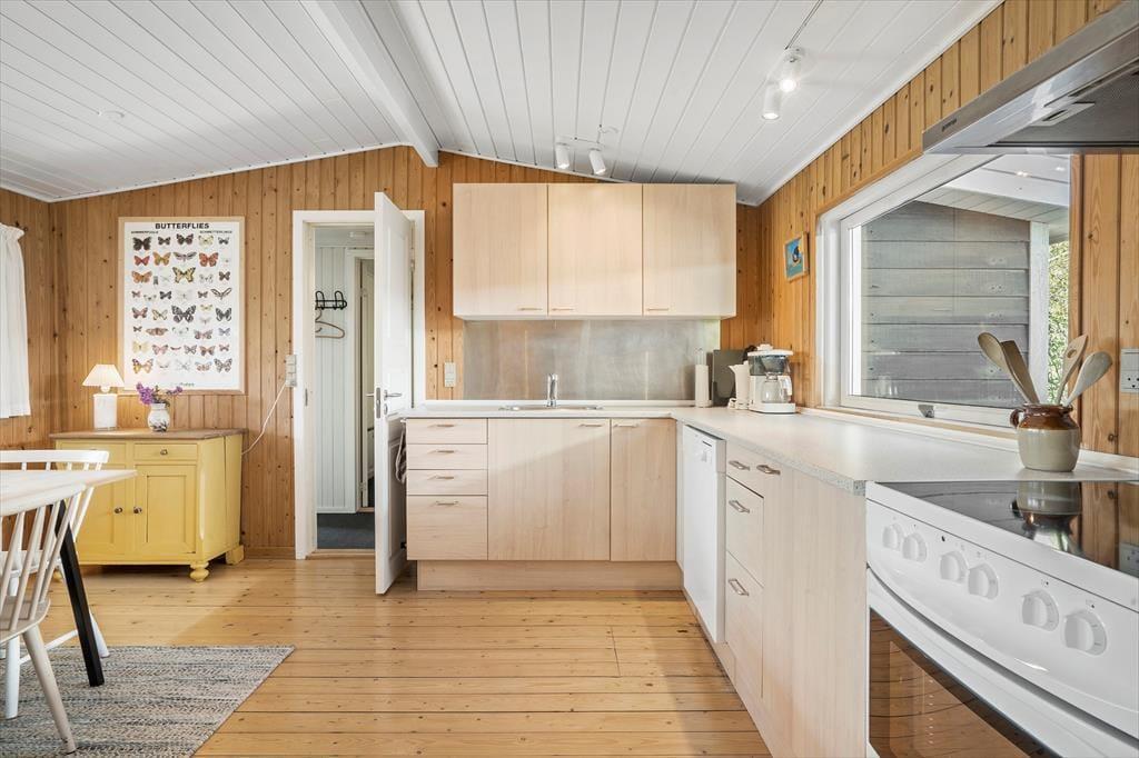 Wenn du nach draußen trittst, eröffnet sich eine Welt voller Möglichkeiten. Das Ferienhaus verfügt über eine große, sonnige Terrasse, auf der du die Sonne genießen, an Sommerabenden grillen oder einfach auf einer Liege entspannen kannst. Der Garten rund um das Haus ist auch perfekt zum Spielen und Entspannen – die Kinder können sich im Sandkasten oder auf der Schaukel vergnügen, während du die entspannte Atmosphäre genießt. Die meisten Tage können damit verbracht werden, die nur 150 Meter entfernte, wunderschöne Saksild-Strand zu besuchen. Hier kannst du schwimmen, Sandburgen bauen oder einfach am Wasser entspannen. Der Strand eignet sich perfekt für Erholung und aktive Wasseraktivitäten wie Stand-up-Paddleboarding.