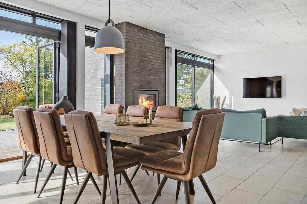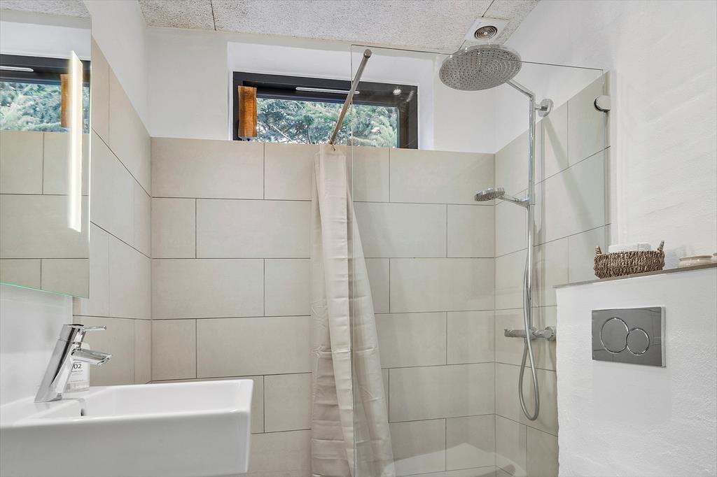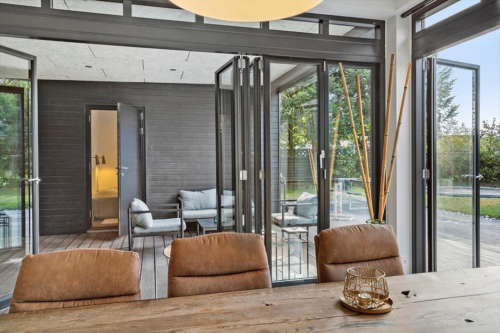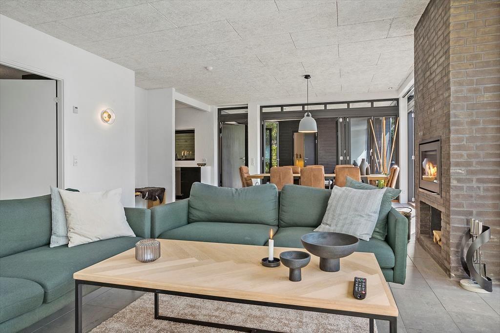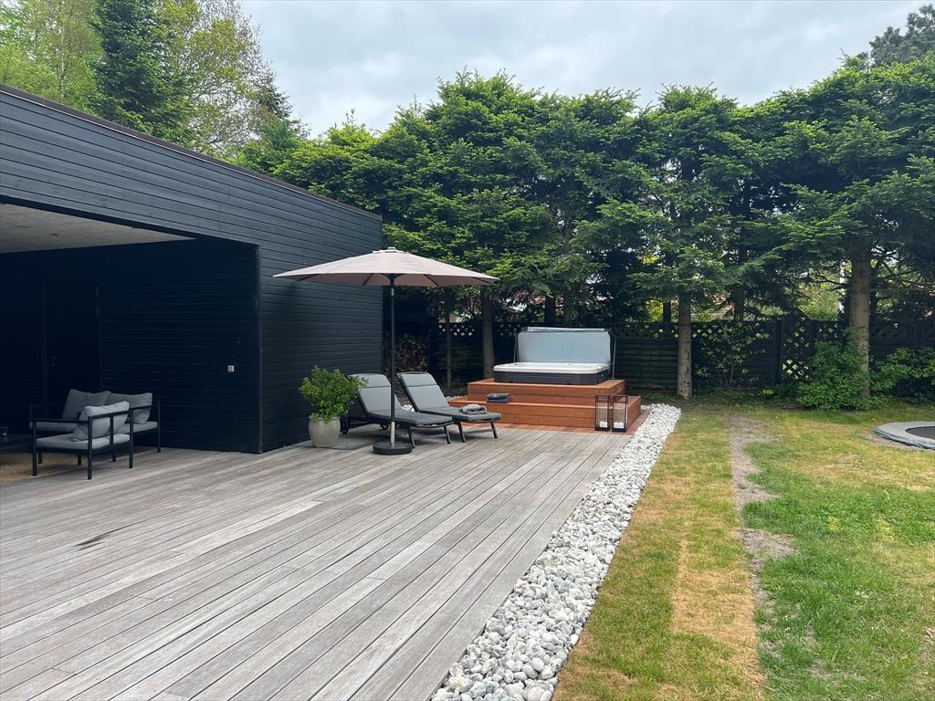 Auch unter freiem Himmel bietet Ihnen dieses Haus zahlreiche Möglichkeiten. Eine ansprechende Holzterrasse mit guten Gartenmöbeln und Liegestühlen erstreckt sich rund um das Urlaubsdomizil. Dank des Grills werden Sie garantiert zahlreiche Mahlzeiten im Freien, wahrscheinlich gern auf dem überdachten Terrassenbereich, genießen. Von hier aus gelangen Sie auch in das Nebengebäude. Im Garten werden Ihre Kinder mit Freude umhertollen und spielen. Für Abwechslung sorgt dabei ein im Boden eingelassenes Trampolin. Nach einem langen Tag am Saksild Strand - einem der besten Badestrände Dänemarks- spült Ihnen die Außendusche den Sand und das Salz des Meeres von der Haut. Gemütlich geht es an kühlen Abenden am Außenkamin zu, an dem Sie natürlich auch Marshmallows rösten können. Bei diesem Außenarealen finden Sie stets ein schönes Plätzchen zum Lesen und Entspannen oder auch für ein kleines Nickerchen.