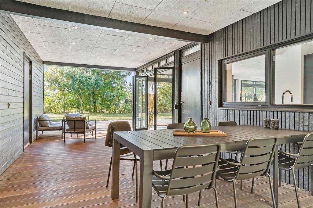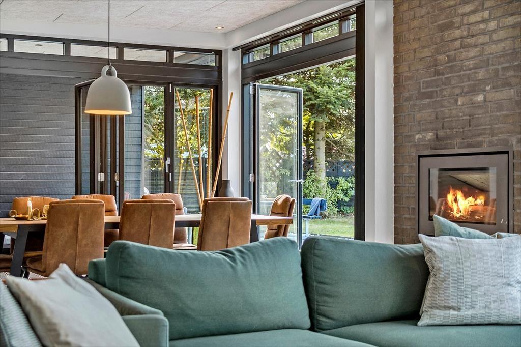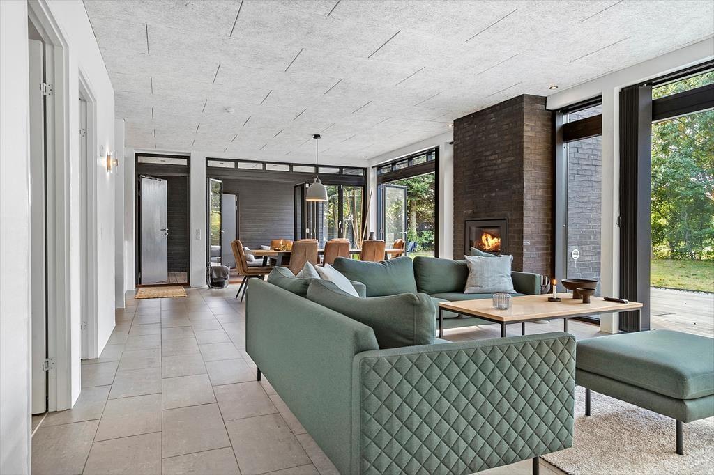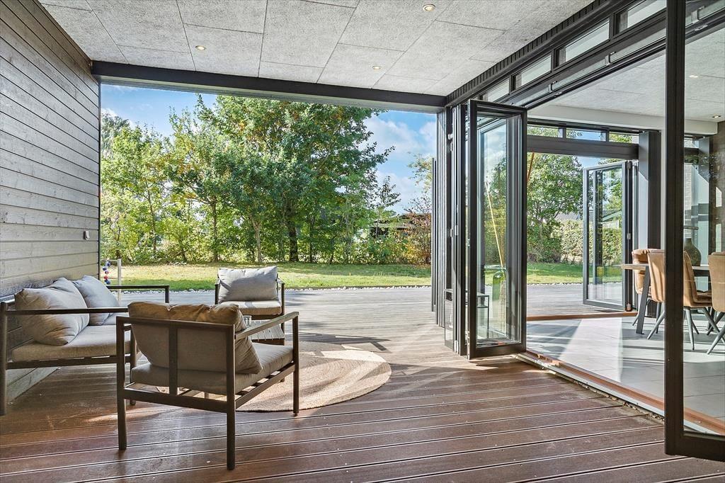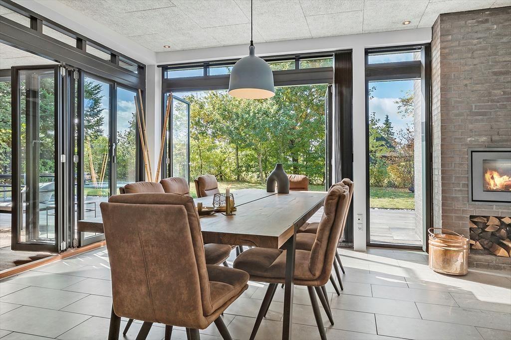 Auch unter freiem Himmel bietet Ihnen dieses Haus zahlreiche Möglichkeiten. Eine ansprechende Holzterrasse mit guten Gartenmöbeln und Liegestühlen erstreckt sich rund um das Urlaubsdomizil. Dank des Grills werden Sie garantiert zahlreiche Mahlzeiten im Freien, wahrscheinlich gern auf dem überdachten Terrassenbereich, genießen. Von hier aus gelangen Sie auch in das Nebengebäude. Im Garten werden Ihre Kinder mit Freude umhertollen und spielen. Für Abwechslung sorgt dabei ein im Boden eingelassenes Trampolin. Nach einem langen Tag am Saksild Strand - einem der besten Badestrände Dänemarks- spült Ihnen die Außendusche den Sand und das Salz des Meeres von der Haut. Gemütlich geht es an kühlen Abenden am Außenkamin zu, an dem Sie natürlich auch Marshmallows rösten können. Bei diesem Außenarealen finden Sie stets ein schönes Plätzchen zum Lesen und Entspannen oder auch für ein kleines Nickerchen.