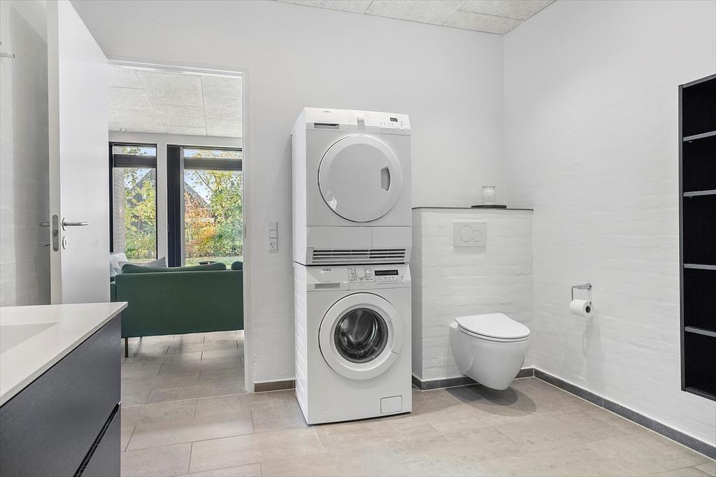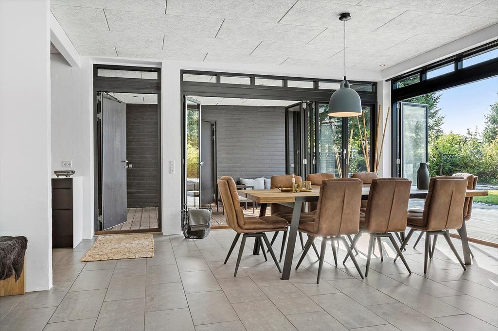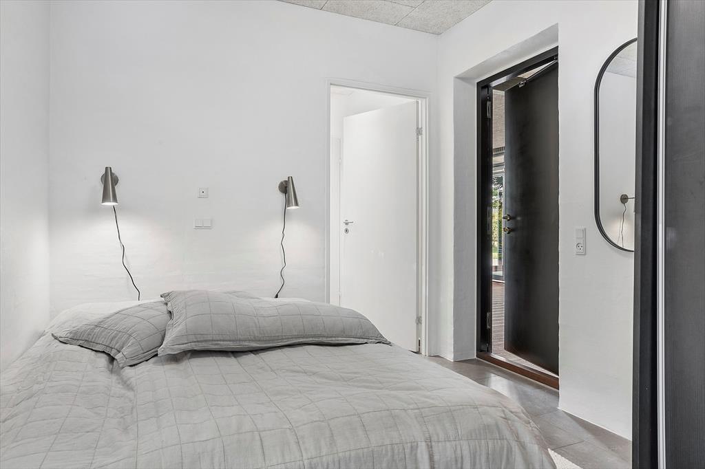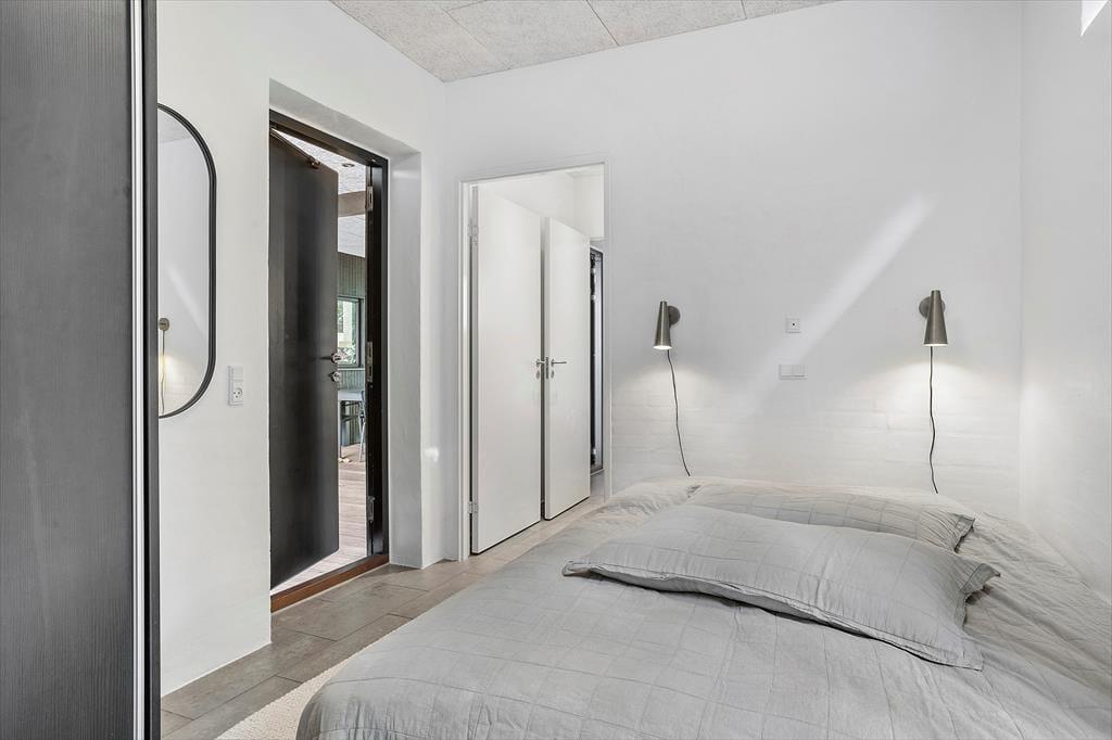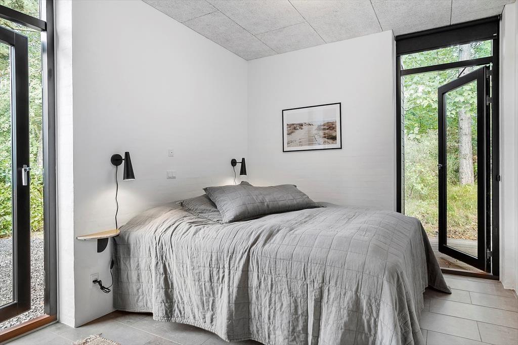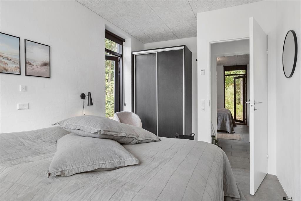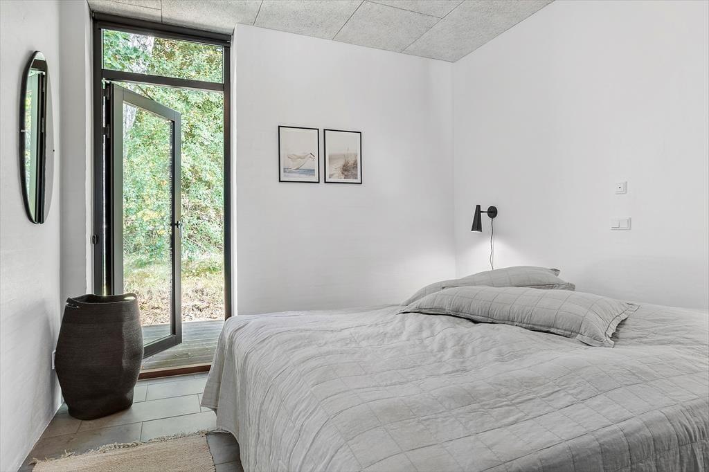 An kühlen Tagen sorgt ein Kaminofen für ein Maximum an Gemütlichkeit und Ferienhausatmosphäre. Die Küche beinhaltet alles, was eine moderne Familie für die Zubereitung Ihrer Urlaubsmahlzeiten benötigt. Drei der insgesamt fünf vorhandenen Schlafräume befinden sich im Ferienhaus. Die beiden anderen Schlafzimmer sind in einem Nebengebäude mit einem eigenen WC und Bad untergebracht. Jedes einzelne der Schlafzimmer verwöhnt mit einem direkten Ausgang in die Natur und mit qualitativ hochwertigen Matratzen. Das im Haupthaus platzierte Badezimmer bietet eine große Duschkabine mit zwei Regenduschköpfen sowie eine Waschmaschine und einen Wäschetrockner. Somit dürfen Sie sich jeden Tag erneut auf saubere, frische Handtücher für den Strand freuen. Das gesamte Haus ist mit einer Fußbodenheizung (Luft-zu-Wasser-Anlage) versehen. Ein gutes Raumklima zu angemessenem Preis ist somit gewährleistet.