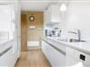 Sie betreten das Haus durch die Küche. Die Küche ist neueren Datums, wirkt mit ihren weißen Elementen angenehm hell und bietet moderne Annehmlichkeiten, zu denen ein neuer Dunstabzug, ein Kühlschrank mit Gefrierfach und ein Geschirrspüler zählen. Die Küche ist funktionell gestaltet und macht die Zubereitung der Mahlzeiten zum Vergnügen. Durch die Küchenfenster an der Ostseite blicken Sie in den Garten. Von der Küche gelangen Sie in den Wohnraum, der mit klassischer Ferienhausgemütlichkeit besticht. Er beinhaltet holzvertäfelte Wände, Teppichboden, einen schönen Kaminofen und große Fenster, die den Ausblick in den schönen Garten ermöglichen.