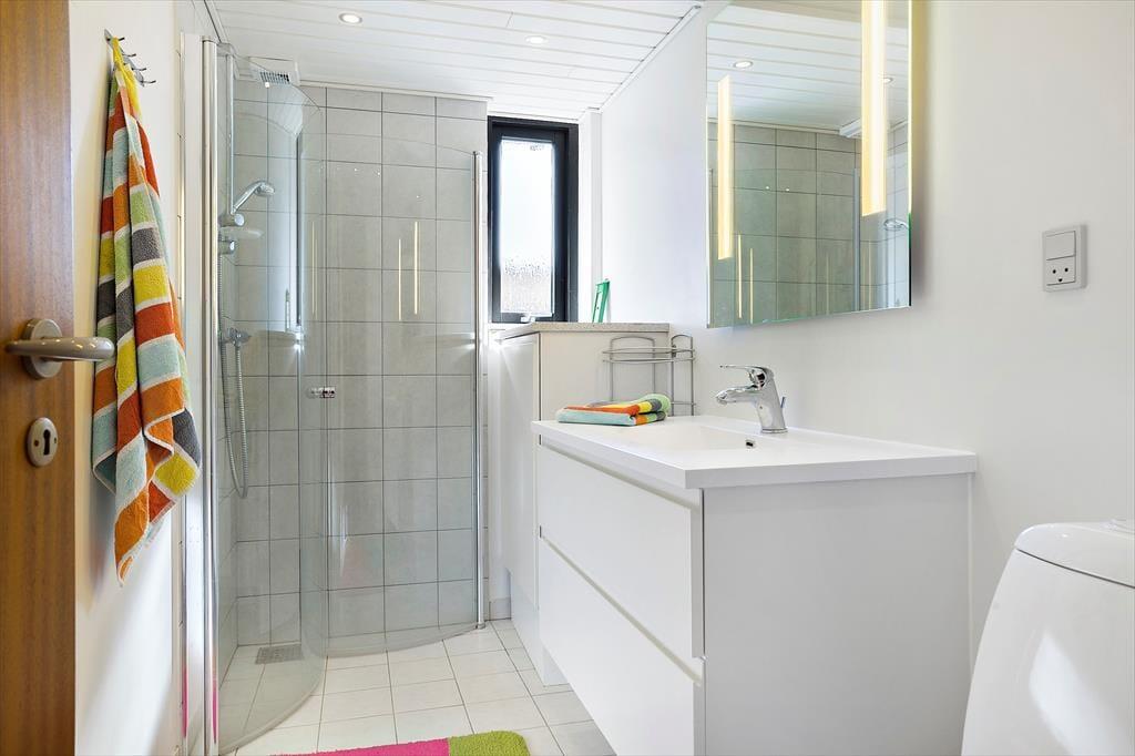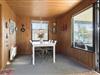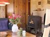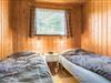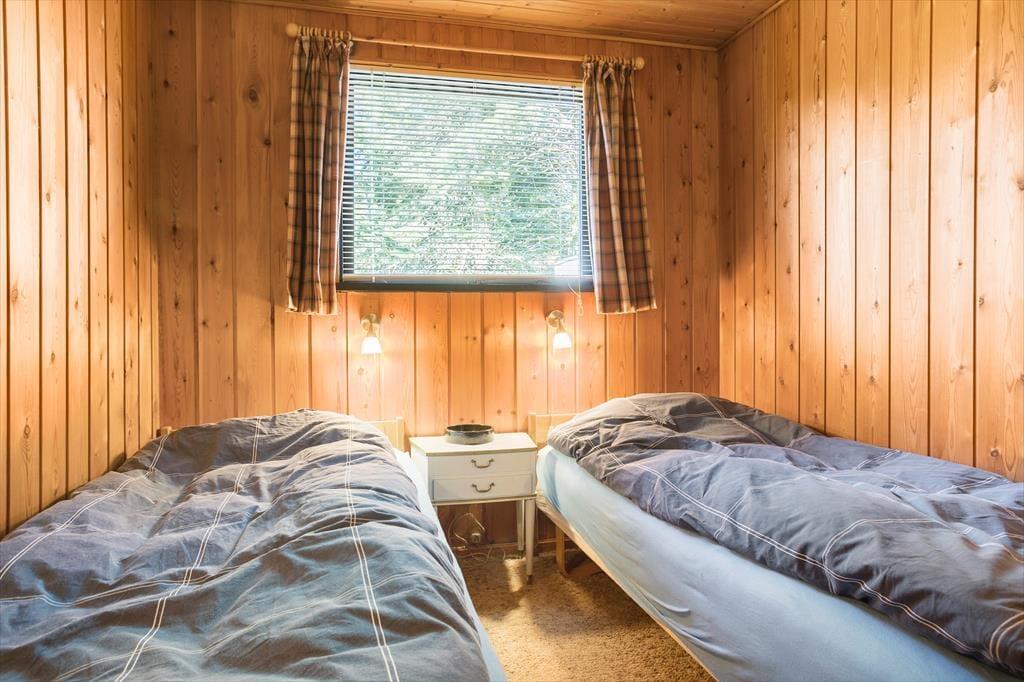 Im Wohnraum laden mehrere gemütliche Eckchen, ein Sofa und Lehnstühle zu entspannten Stunden vor dem Kaminofen und dem Fernseher ein. In Verlängerung des Wohnraums erwartet Sie der Esstisch für vier Personen. Bei gutem Wetter treten Sie hinaus auf die überdachte Terrasse, auf der Sie wunderbar die Mahlzeiten genießen können. Die beiden Schlafzimmer liegen Seite an Seite neben dem Badezimmer. Sie verfügen über Einzelbetten, Bettlampen und Schrankfläche. Die Schlafzimmer wirken gemütlich und rustikal. Das schöne Badezimmer präsentiert sich ansprechend hell und verfügt über eine Duschkabine und eine Fußbodenheizung. Der Rest des Ferienhauses wird mit dem Kaminofen und mit Elektroheizkörpern beheizt.