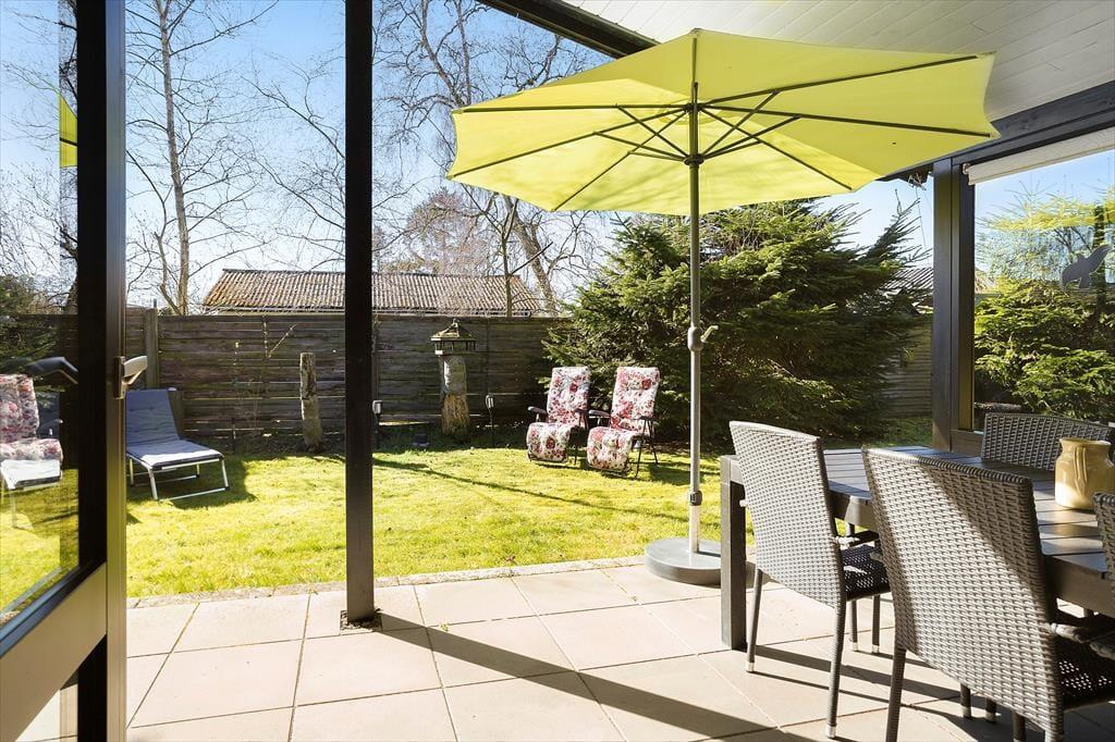 Der schöne Garten ist von Bäumen und einem Zaun umgeben und bietet angenehm viel Privatsphäre. Vom Wohnraum gelangen Sie hinaus auf eine schön überdachte Südterrasse, auf der gute Gartenmöbel, ein Grill und ein Sonnenschirm bereit stehen. Mehrere Liegestühle laden im Garten zu kleinen Nickerchen und ausgedehnten Sonnenbädern ein. An die Ost- und die Westseite des Hauses schließen gepflasterte Terrassen, auf denen Sie Windschutz und Sonne genießen. Die Grasfläche ziert eine dekorative, alte Wasserpumpe. Vor dem Haus steht eine gute Parkfläche zur Verfügung.