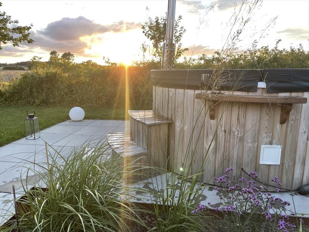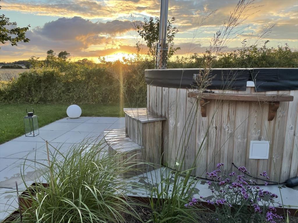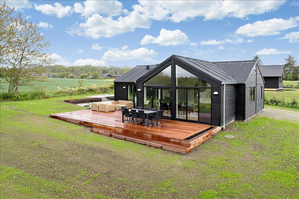 Rund um das Ferienhaus erstreckt sich eine tolle Holzterrassenanlage mit zahlreichen guten Gartenmöbeln, Liegestühlen, Sonnenschirmen und Loungemöbeln. Auf dem hauseigenen, großen Gasgrill können Sie allabendlich köstliche Mahlzeiten für die gesamte Familie zubereiten. Das Haus liegt angenehm erhöht in der Landschaft, sodass Sie einen attraktiven Ausblick über die offenen Wiesen und Felder genießen.