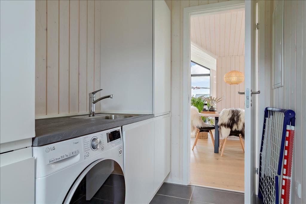 Der Hauswirtschaftsbereich des Ferienhauses umfasst eine Waschmaschine und einen Wäschetrockner, sodass Sie stets über frische, saubere Handtücher für den nächsten Strandtag verfügen.