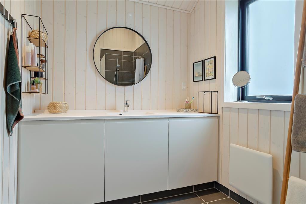 Wir freuen uns sehr, Ihnen dieses neugebaute Ferienhaus nahe dem Saksild Strand präsentieren zu dürfen. Das Haus wurde erst im Jahr 2021 fertiggestellt und lädt Sie und Ihre Familie oder auch Ihre Freunde zu einem gemütlichen und überaus erholsamen Urlaub in modernem Ambiente ein. Das geschmackvoll gestaltete Mietobjekt bietet drei Schlafräume, einen offenen Küchen- und Essbereich, einen Wohnraum, zwei tolle Badezimmer und einen Hauswirtschaftsbereich. Bei den Schlafplätzen handelt es sich um qualitativ hochwertige Doppelbetten. Einer der Schlafräume begeistert zudem mit einem direkten Zugang zu einem eigenen Badezimmer mit einer Dusche und einem WC. Das Herzstück und somit den zentralen Sammelpunkt aller Mitreisenden bildet der helle Küchen- und Essbereich, der zentral im Haus platziert ist und mit einem wunderbaren Tageslichteinfall durch die großen Fensterpartien zu verzaubern weiß. In der Küche bieten sich Ihnen alle modernen Annehmlichkeiten, die Sie für die Zubereitung köstlicher Urlaubsmahlzeiten benötigen. Zu diesen Annehmlichkeiten zählen ein Induktionskochfeld mit eingebautem Dunstabzug, ein Backofen, eine Mikrowelle, eine Kaffeemaschine, eine Espresso-Kaffeemaschine, ein Geschirrspüler, ein Kühlschrank, eine Gefriermöglichkeit und ein toller Weinkühlschrank, der dafür sorgt, dass Sie Ihren Weißwein auf der Terrasse stets wohltemperiert genießen können. In direkter Verbindung zur Küche lockt der schöne Essbereich mit ausreichend Platz für alle Mitreisenden. Hier genießen Sie die Mahlzeiten in geselliger Runde und absolvieren sicherlich hin und wieder auch das ein oder andere vergnügliche Gesellschaftsspiel. Der Wohnraum bietet Ihnen eine gemütliche Sofagruppe mit schöner Aussicht über die Umgebung. Für Unterhaltung und Abwechslung sorgt der Fernseher. Dieser verfügt zwar nicht über "normale" Fernsehsender, ermöglicht Ihnen aber Dank Chromecast, dass Sie Internetinhalte, Filme und Serien über Ihren privaten Streamingdienst mittels Ihres Tablets oder Smartphones auf den Fernseher übertragen. Ein schöner Schlafboden mit einem Tagesbett ist ebenfalls vorhanden und wird sich sicherlich bei Ihnen als gemütlicher, schöner rund ruhiger Rückzugsort großer Beliebtheit erfreuen.