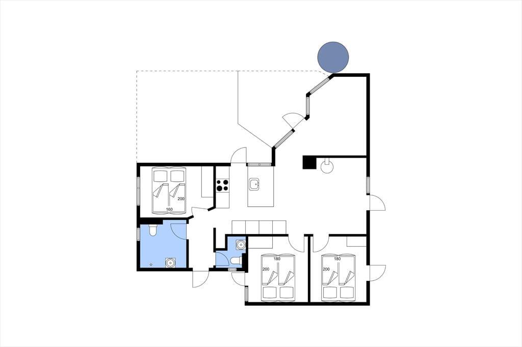 Das Hausinnere wirkt angenehm hell und freundlich und besticht mit einer geschmackvollen Möblierung. Die moderne Küche bietet ausreichend Platz und beinhaltet einen Geschirrspüler, eine Mikrowelle, einen Kühl- und Gefrierschrank sowie alle anderen Dinge, die Sie für die Zubereitung Ihrer täglichen Mahlzeiten benötigen. In direkter Verlängerung der Küche erwartet Sie der große Essplatz. Über ein paar Stufen gelangen Sie vom Küchen- und Essbereich in den Wohnraum, in dem Sie eine Polstersitzgruppe und ein Kaminofen zu gemütlichen Stunden einladen. Von hier treten Sie hinaus auf die Holzterrasse mit Meerblick. Das Haus verfügt über einen Fernseher mit einem TV-Paket, mit dem Sie dänische, deutsche, schwedische und norwegische Sender empfangen. Chromecast und eine Internetverbindung mit einer Geschwindigkeit von 100/100 Mbit sind vorhanden. Die Schlafplätze verteilen sich auf drei Schlafräume mit jeweils einem guten Doppelbett. Die Schlafräume sind schön und praktisch eingerichtet. Ein Badezimmer mit WC und Dusche und ein Gäste-WC stehen bereit.