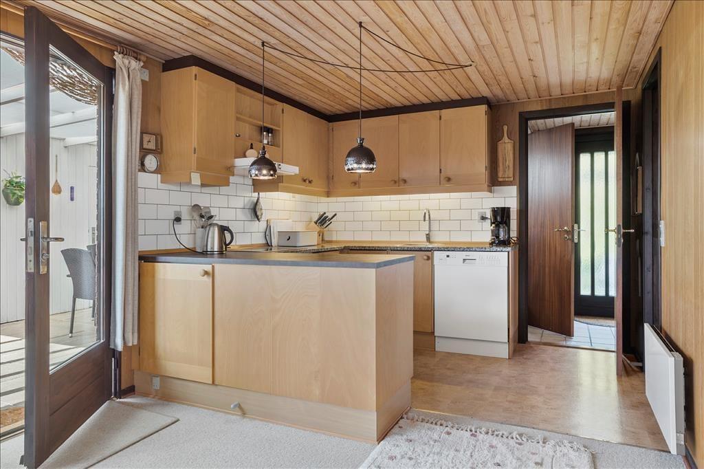Es eignet sich hervorragend für den Urlaub mit der Familie oder mit guten Freunden oder wenn Sie einfach nur eine kleine Auszeit vom Alltag benötigen. Insgesamt können Sie sich in diesem Haus und in dieser schönen Umgebung, sehr nah am Saksild Strand, wunderbar gemeinsam erholen und entspannen. Die Schlafplätze verteilen sich auf drei Schlafzimmer, die alle mit je einem Doppelbett ausgestattet sind. Zwei der Schlafräume sind dabei miteinander verbunden. Im Küchen- und Essbereich treffen Sie auf ausreichend Platz, um es sich gemeinsam rund um den Esstisch gemütlich zu machen. Hier werden Sie sicherlich viel Zeit beim Essen und während geselliger Runden verbringen. Direkt an den Küchen- und Essbereich schließt der Wohnraum, in dem ein Fernseher mit dänischen, deutschen, schwedischen und norwegischen Sendern für Unterhaltung sorgt. Einer der Schlafräume verfügt zusätzlich über einen eigenen Fernseher. Das Badezimmer ist mit einem WC und einer Dusche ausgestattet. Im Hauswirtschaftsbereich stehen eine Waschmaschine und ein zusätzlicher Kühlschrank mit Gefriermöglichkeit für Sie bereit.