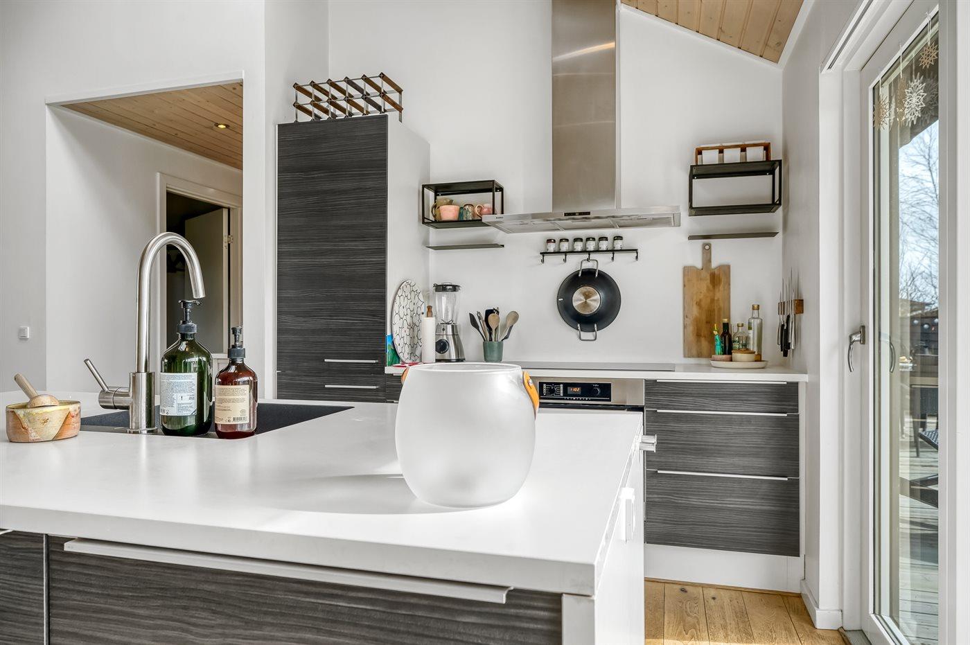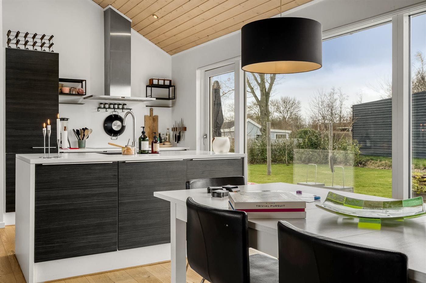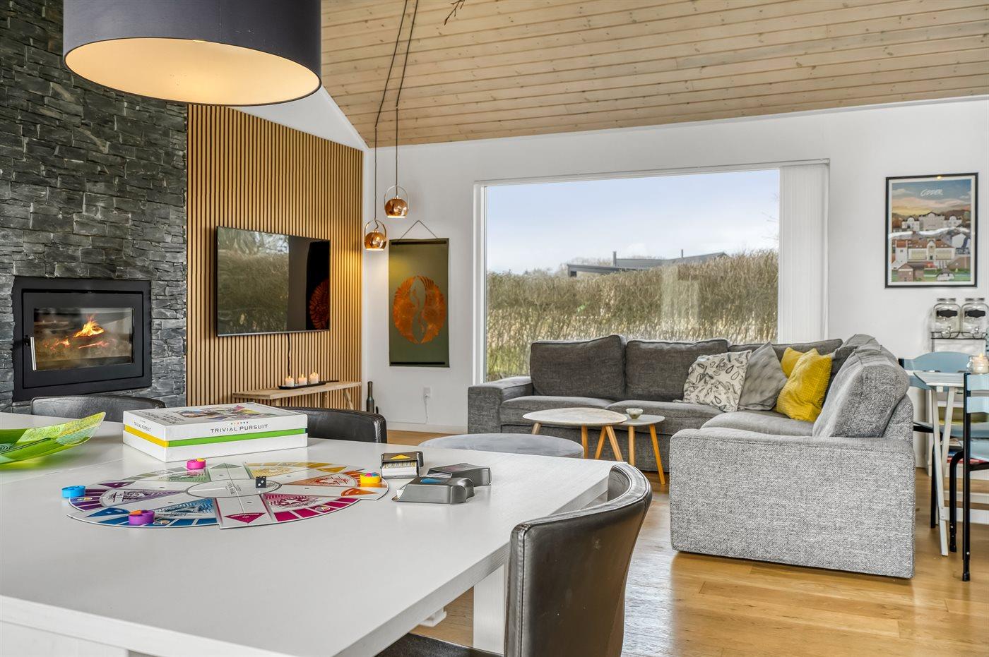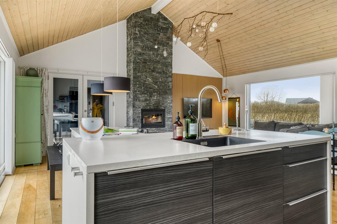 Die gute Raumaufteilung des Ferienhauses eignet sich perfekt für eine Familie mit 2-3 Kindern oder sogar für zwei Familien, die gemeinsam in dieser fantastischen Umgebung Urlaub machen möchten. Außerdem ist es möglich, den vierbeinigen Freund der Familie mitzunehmen. Das Ferienhaus bietet eine wunderschöne Aussicht, von der aus der See zu sehen ist. Das Herz des Hauses ist der große Küchen-/Essbereich mit integrierter Wohnstube und direktem Zugang zur herrlichen Terrasse, die teilweise überdacht ist. Hier gibt es immer eine geschützte Ecke, in der man die Ferien in Ruhe bei einer guten Tasse Kaffee oder einem Glas Wein genießen kann. Außerdem gibt es hier ein wunderbares Außen-Whirlpool mit Platz für die ganze Familie.