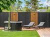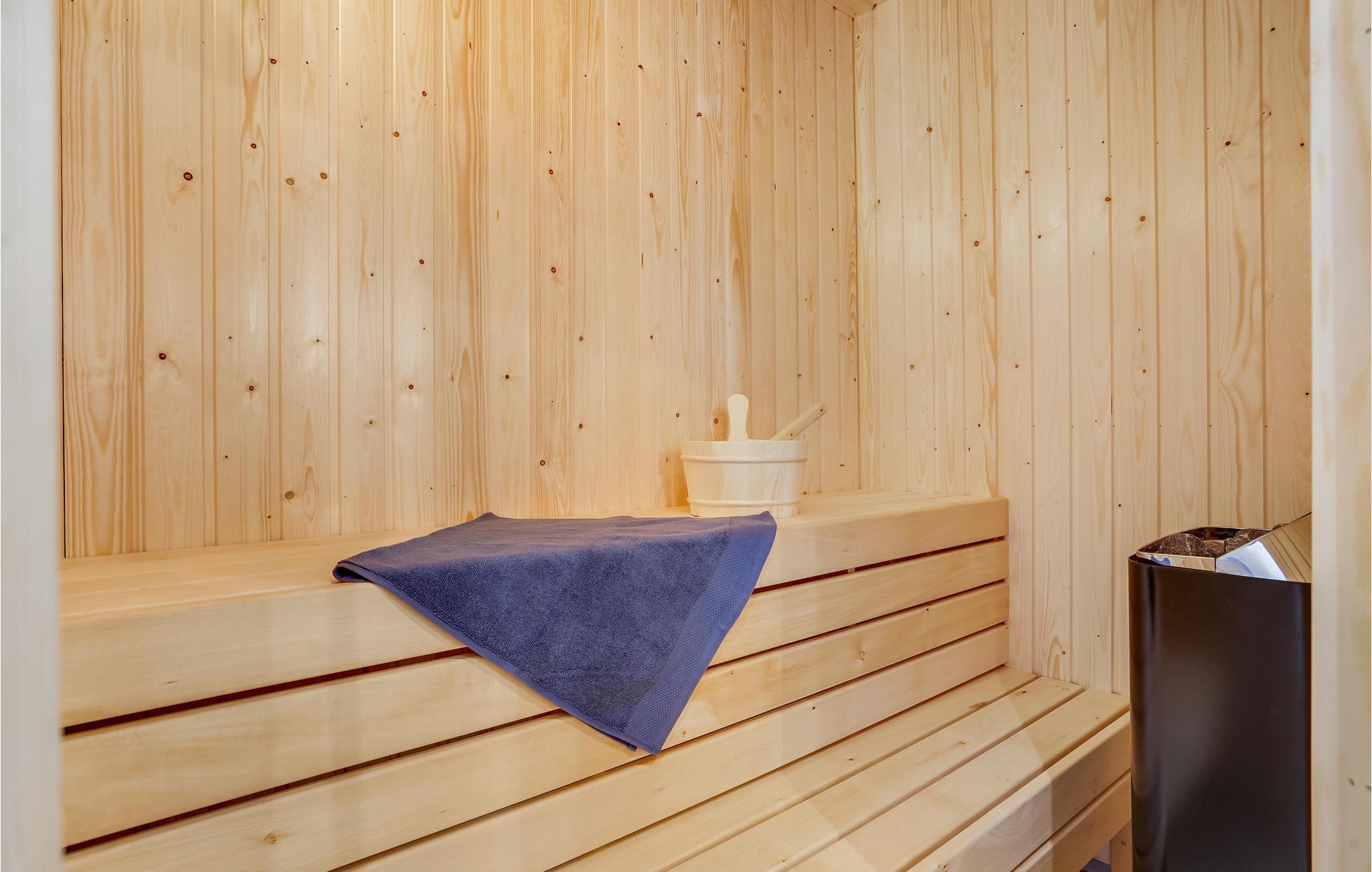 Dazu gibt es eine gemütliche Sauna für die kalten Tage und ein finnisches Holzbad– mehr Entspannung geht nicht.