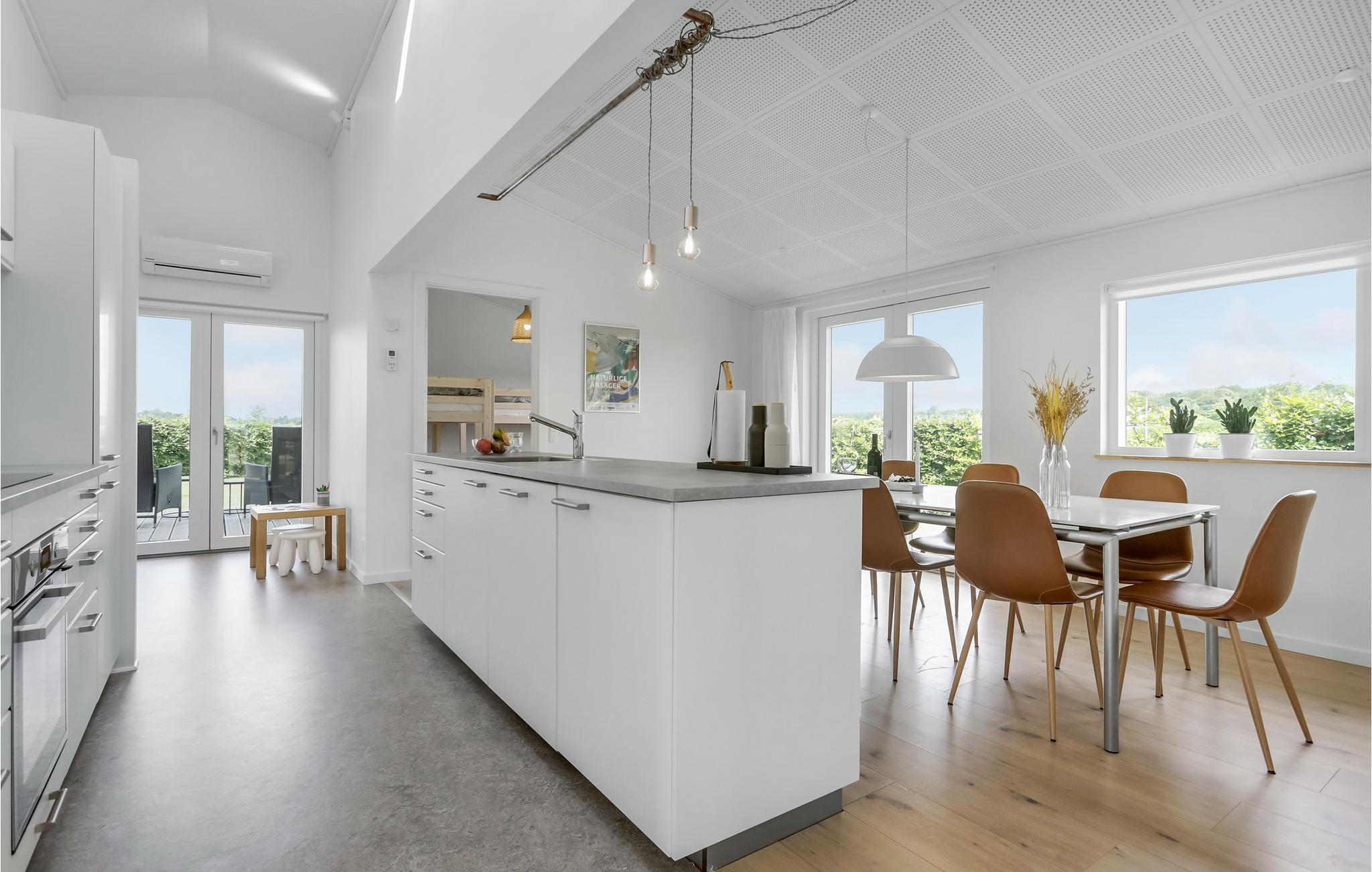Das Haus befindet sich im beliebten Saksild und verfügt über eine schöne große offene Küche, die mit einem guten Essbereich verbunden ist. Der Raum ist einladend und mit Oberlichtern ausgestattet, die das schönste Licht im Raum bieten. Das Wohnzimmer ist teilweise von der Küche und dem Wohnzimmer mit einer Wand abgeschirmt. Vom Wohnzimmer aus haben Sie Zugang zu einer großen Holzterrasse mit Badezuber. Großes und geräumiges Badezimmer und 3 gute Zimmer, eines mit 2 Etagenbetten mit Platz für 4 Kinder, die anderen Schlafzimmer sind mit Doppelbetten ausgestattet. Das Haus wurde mit der Absicht gebaut, so CO2-neutral wie möglich zu sein. Mit dem Grundgedanken der Nachhaltigkeit wurde eine ehemalige Kindertagesstätte zu diesem Ferienhaus umgebaut. Es gibt ein "Schwesterhaus" in der gleichen Gegend D82128. Genießen Sie die abwechslungsreiche und wunderschöne Natur der Region, sanfte Hügel, kurvenreiche Waldwege und wunderschöne Strände.
