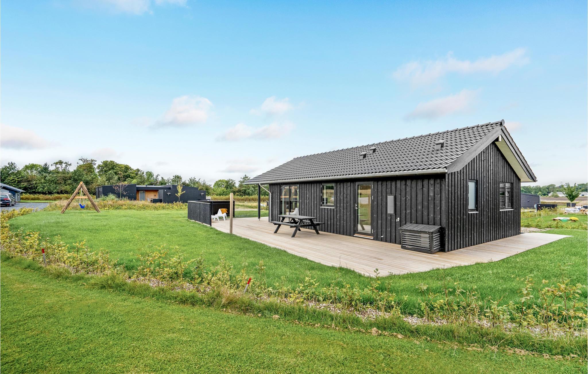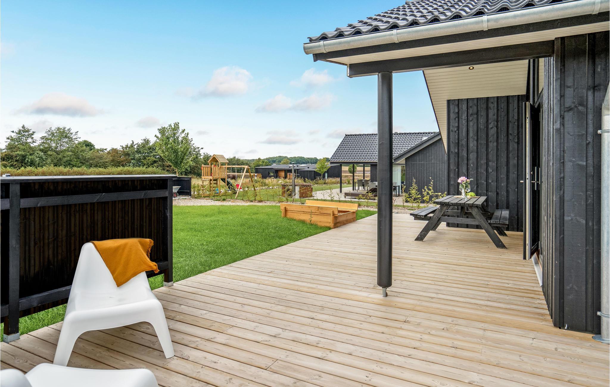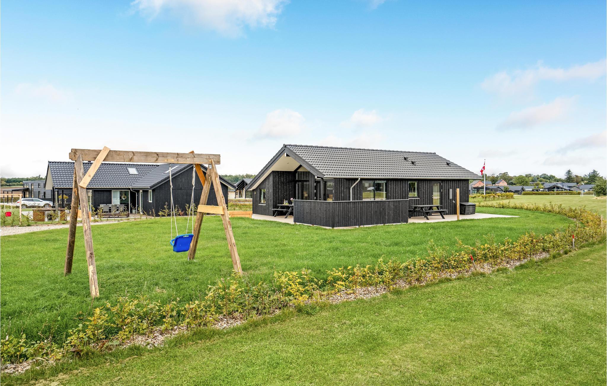 Modernes Ferienhaus mit privatem Garten und Meerblick nahe Saksild Strand.