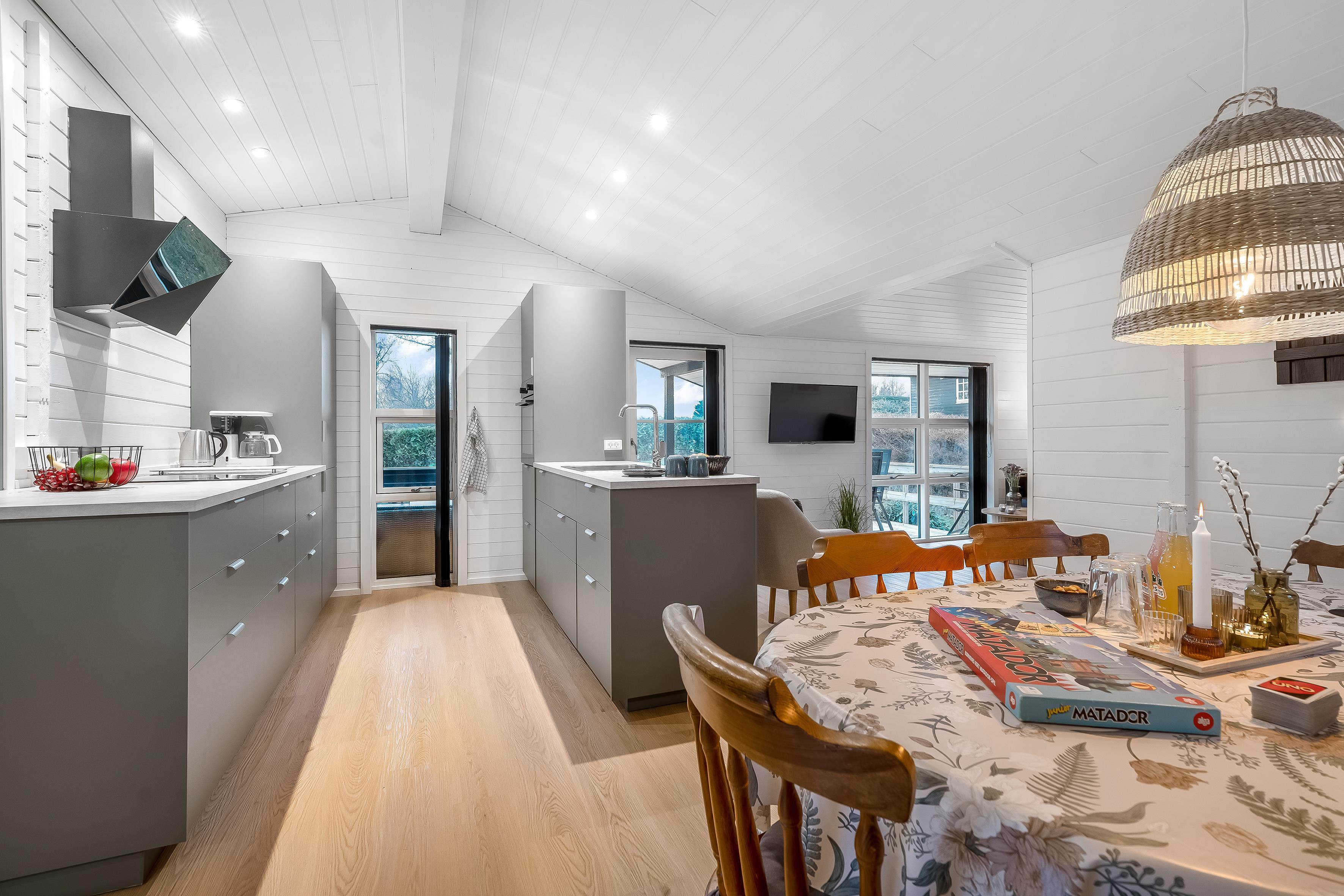 Zur Unterhaltung steht Ihnen ein Fernseher mit dänischem und deutschem Fernsehen sowie Chromecast zur Verfügung, sodass Sie Ihre Lieblingssendungen streamen können. Dank WLAN bleiben Sie jederzeit online.