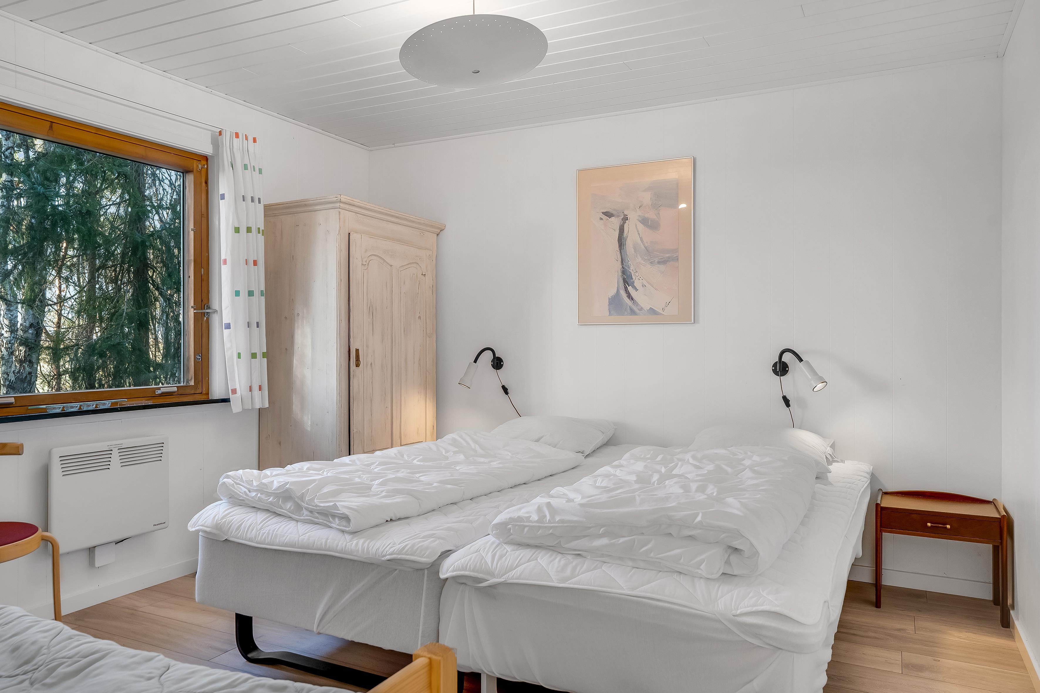 Das Haus erstreckt sich über 92 Quadratmeter und verfügt über drei komfortable Schlafzimmer. Das erste und zweite Schlafzimmer sind jeweils mit einem Doppelbett ausgestattet, während das dritte Schlafzimmer mit drei Einzelbetten ausgestattet ist und sich somit ideal für Familien mit Kindern eignet. Insgesamt bietet das Haus Platz für 7 Personen. Für die jüngsten Gäste stehen außerdem ein Kinderbett und ein Hochstuhl bereit.