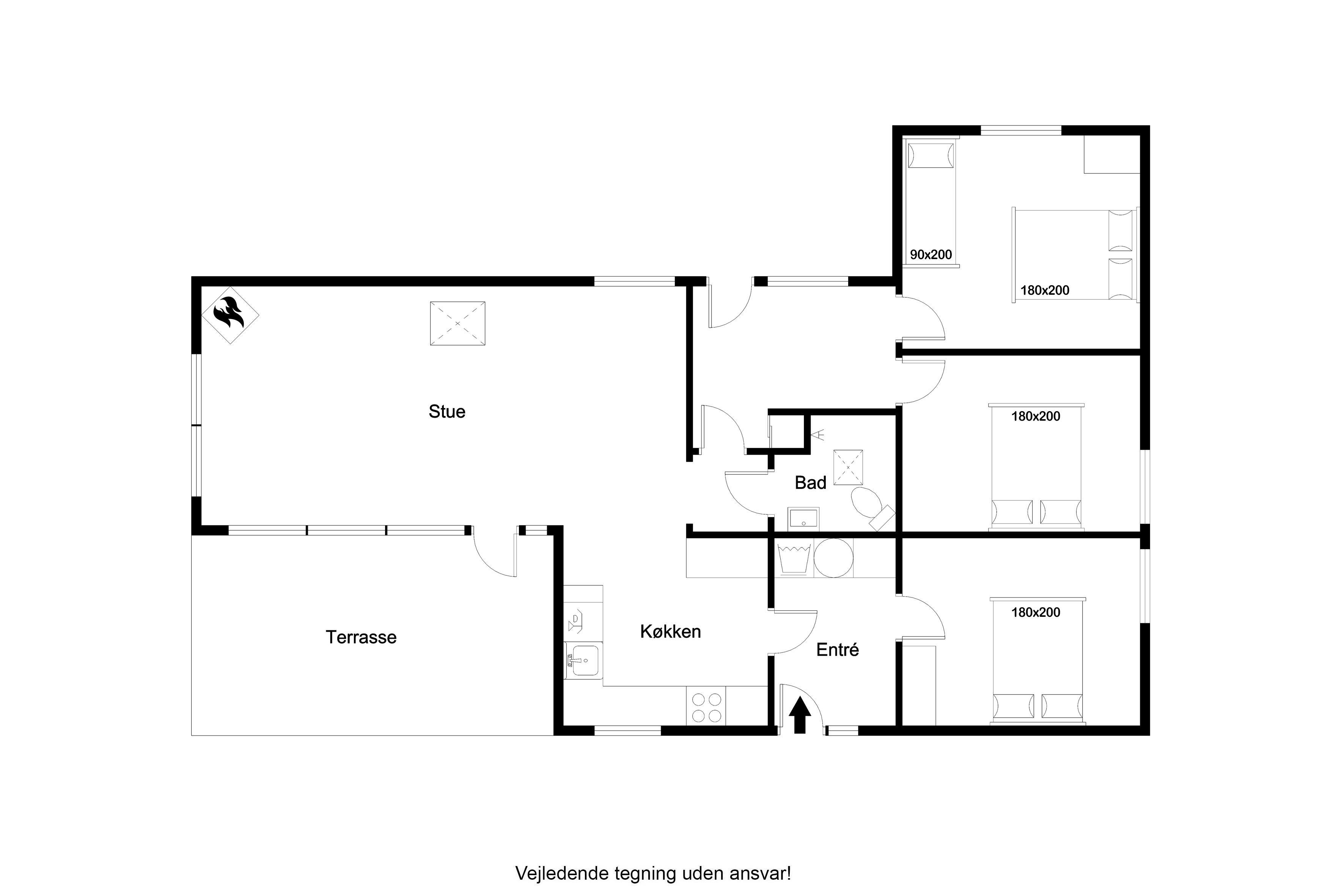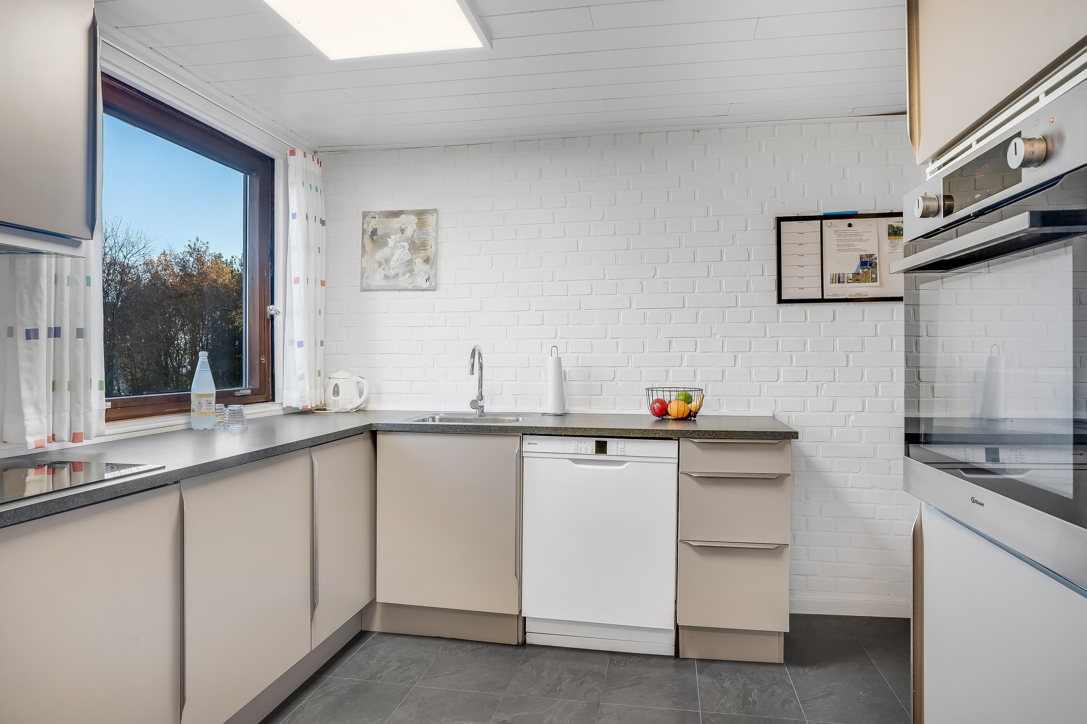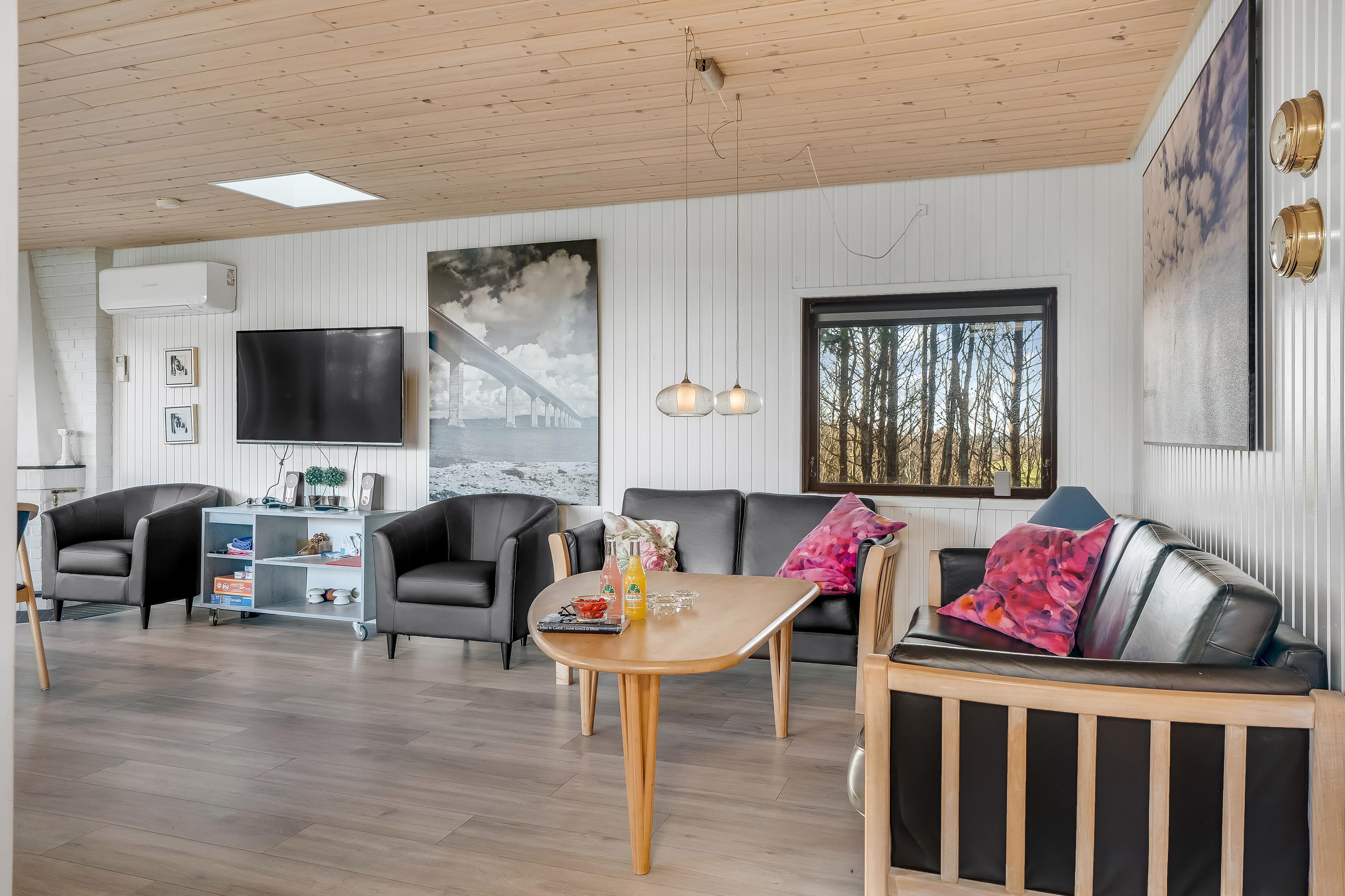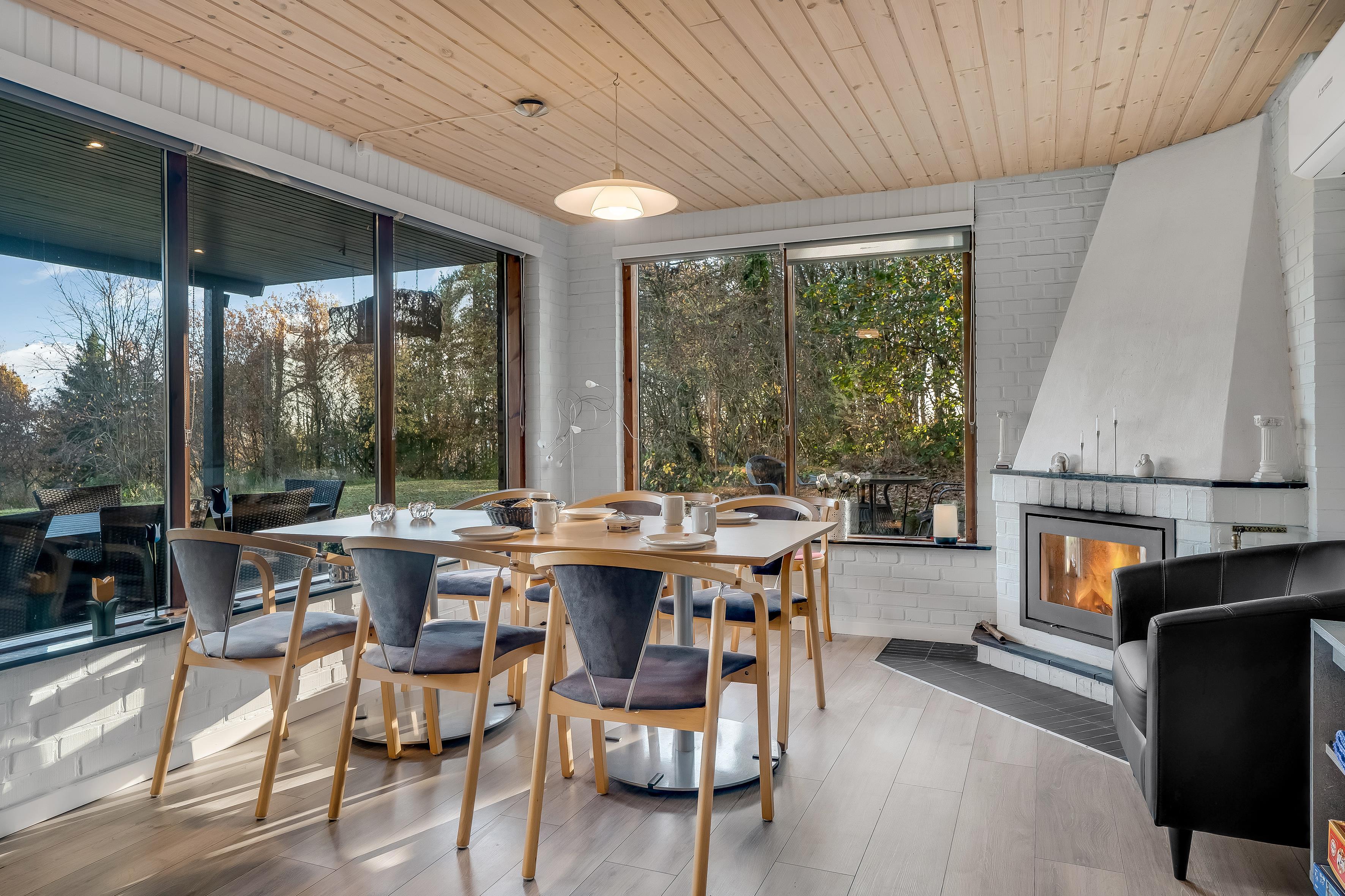 Beim Betreten des Hauses werden Sie sich sofort wie zu Hause fühlen. Der offene Wohnbereich verfügt über einen Kaminofen, der an kühleren Abenden für eine warme und gemütliche Atmosphäre sorgt. Hier können Sie sich bei einem guten Programm auf dem Flachbildfernseher entspannen, der sowohl dänisches als auch deutsches Fernsehen sowie Chromecast zum Streamen Ihrer Lieblingsfilme bietet. WLAN steht Ihnen ebenfalls zur Verfügung, sodass Sie bei Bedarf in Verbindung bleiben können.