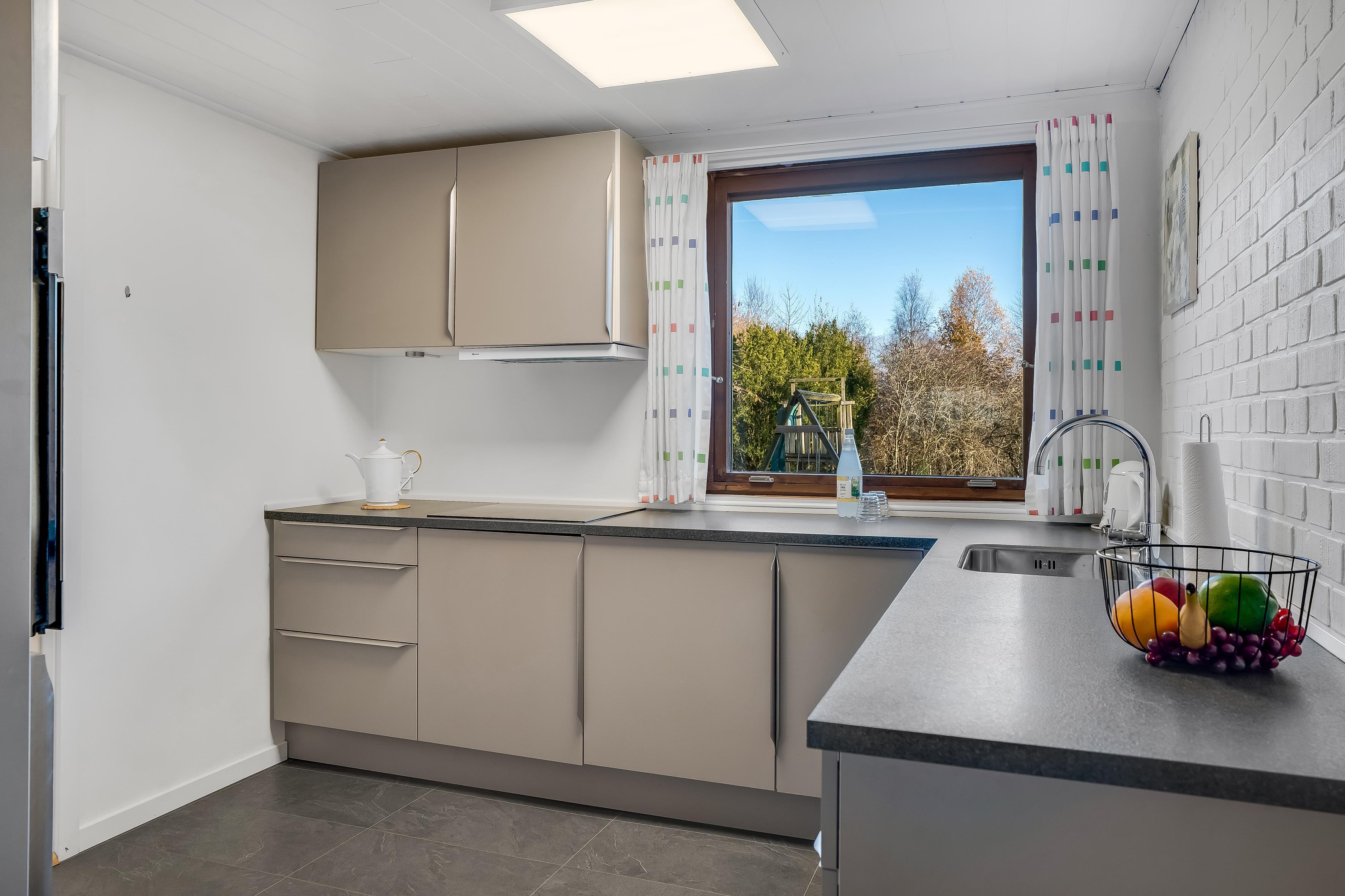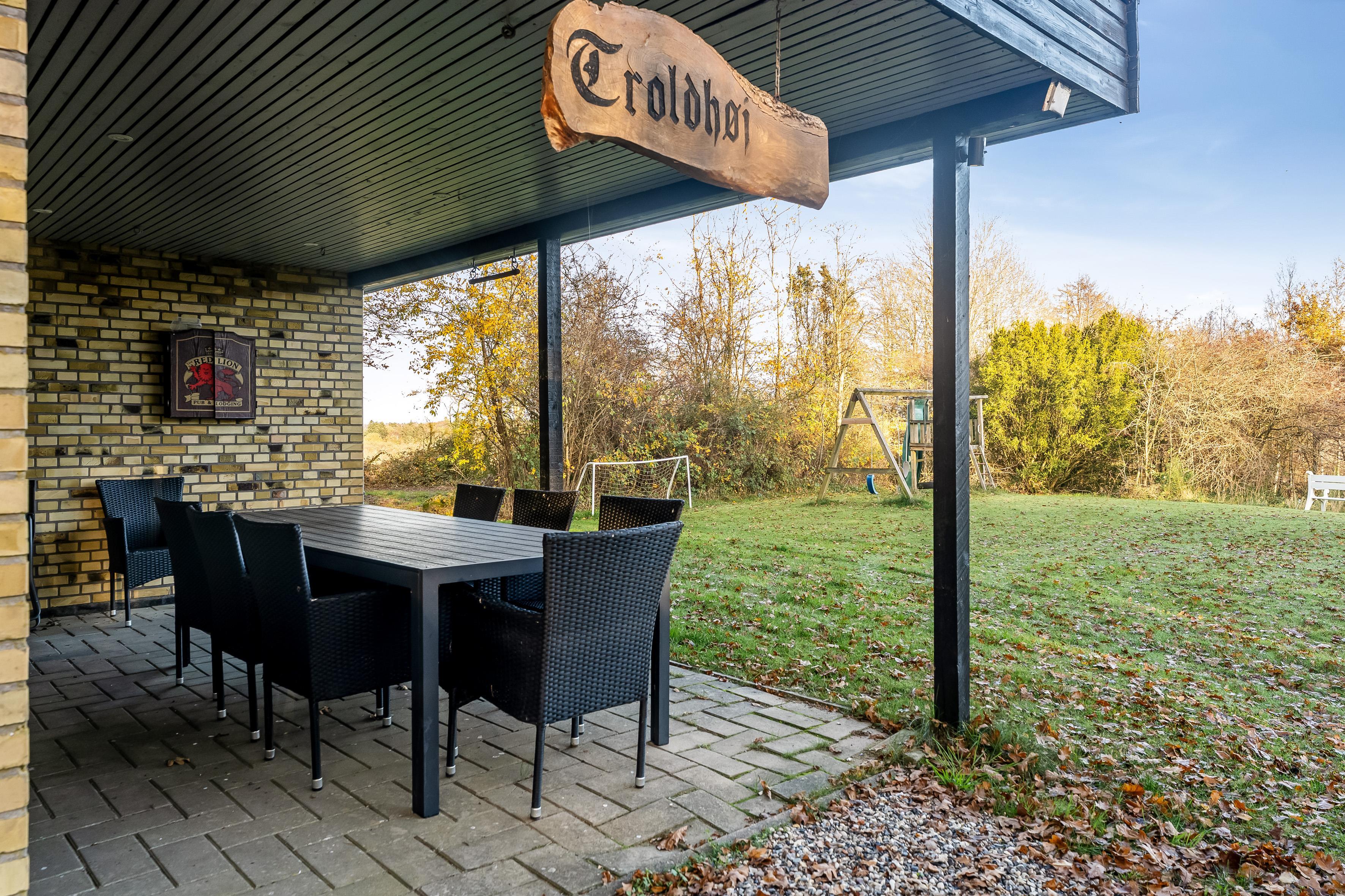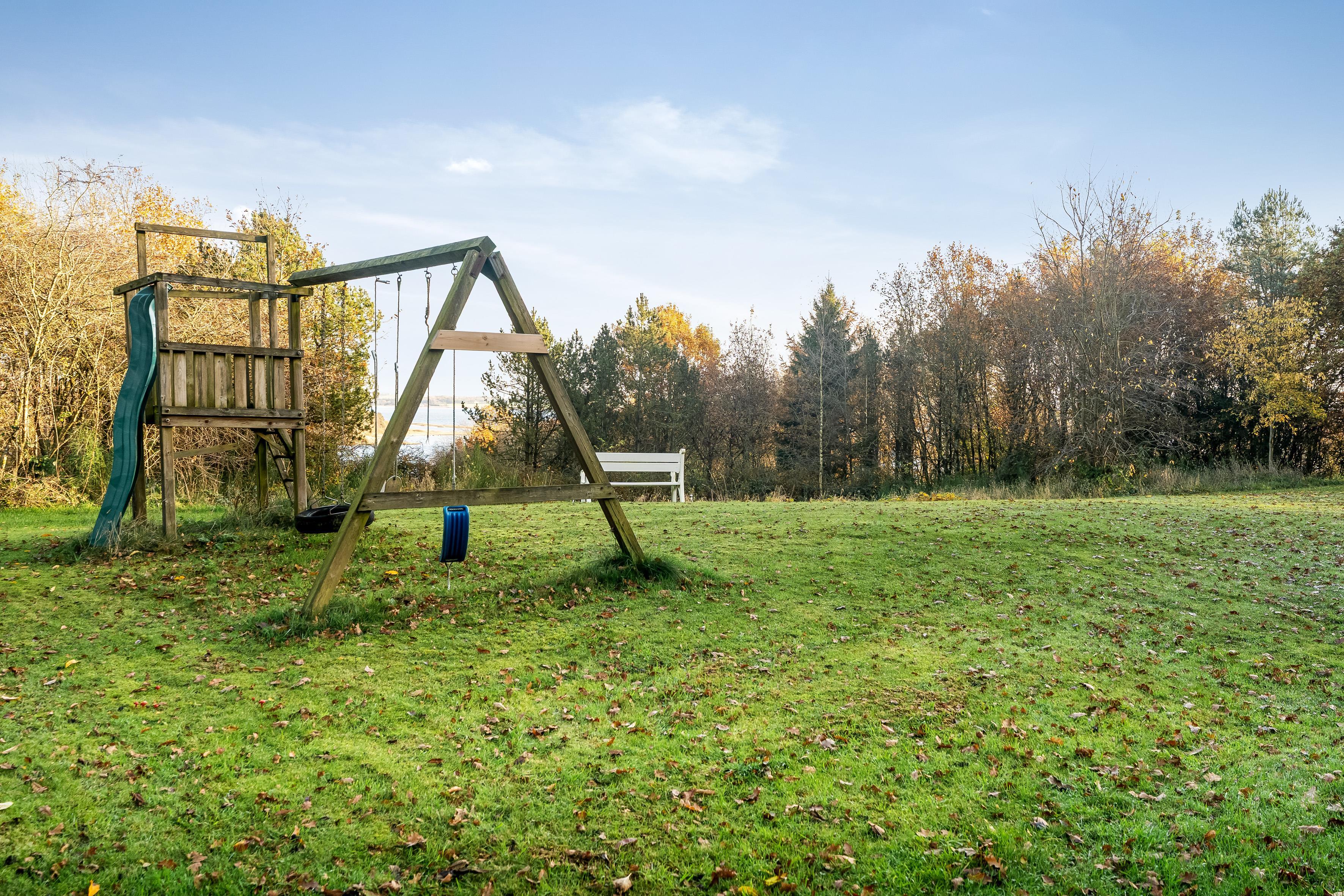 Der Außenbereich ist einfach beeindruckend. Die überdachte Terrasse ist perfekt, um den Morgenkaffee zu genießen oder einen Grillabend mit der Familie zu verbringen. Es gibt auch eine offene Terrasse, auf der Sie in der Sonne entspannen und den Blick auf den Fjord genießen können. Für alle, die gerne aktiv im Freien sind, gibt es Schaukeln für Kinder und eine Feuerstelle, an der man sich abends zu Geschichten versammeln kann.