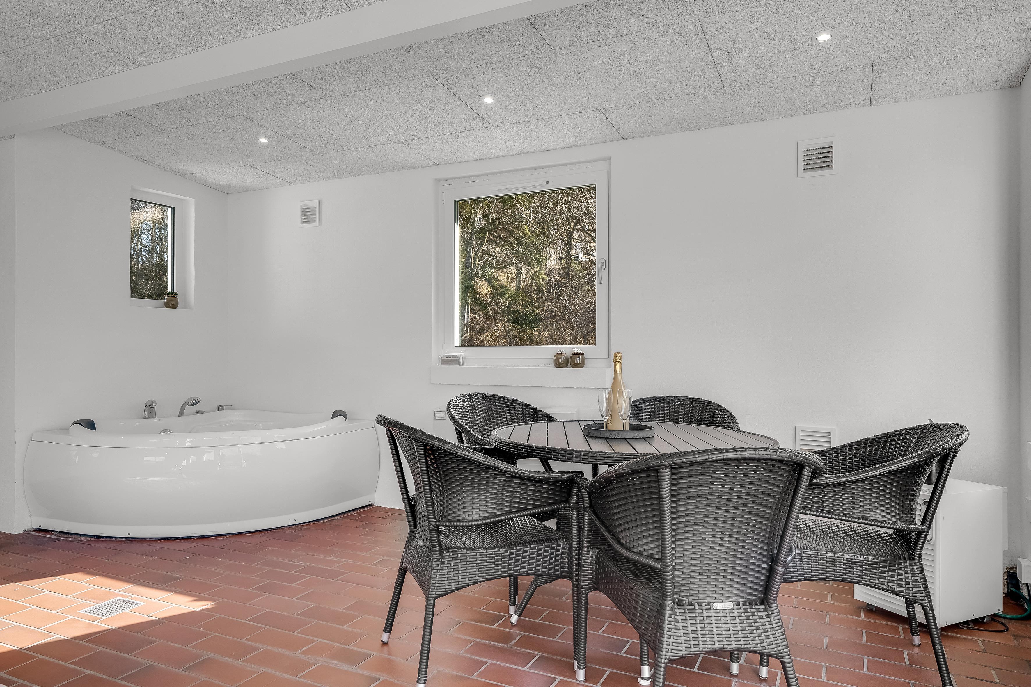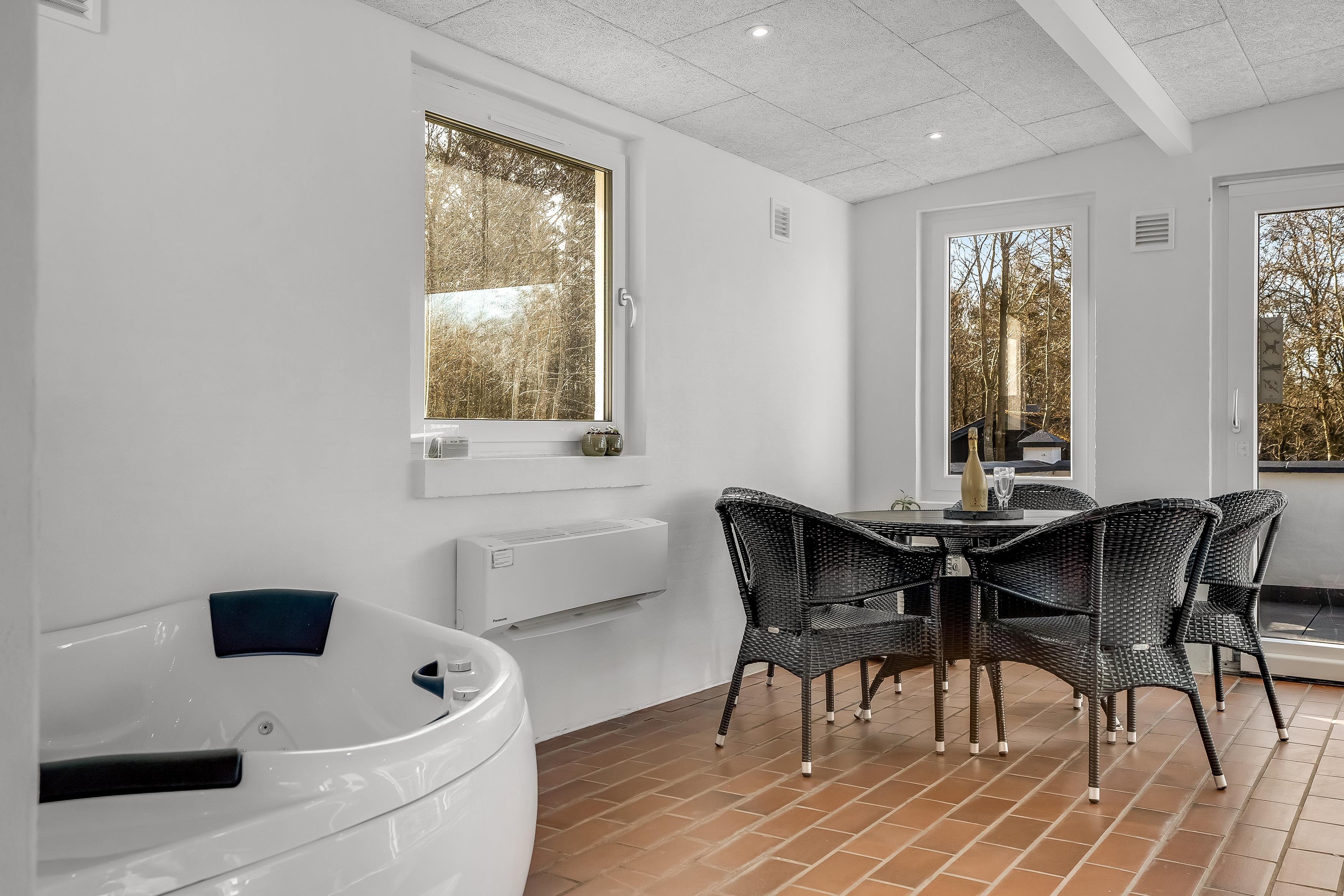 Im Außenbereich können Sie die sonnige Terrasse genießen, grillen und entspannen. Für alle, die ein Bad nehmen möchten, gibt es einen schönen beheizten Pool sowie einen Indoor-Whirlpool für bis zu zwei Personen, der nach einem langen Tag voller Aktivitäten für vollkommene Entspannung sorgt. Das Haus ist außerdem mit einer Wärmepumpe und einem Holzofen ausgestattet, die das ganze Jahr über für angenehme Temperaturen sorgen.
