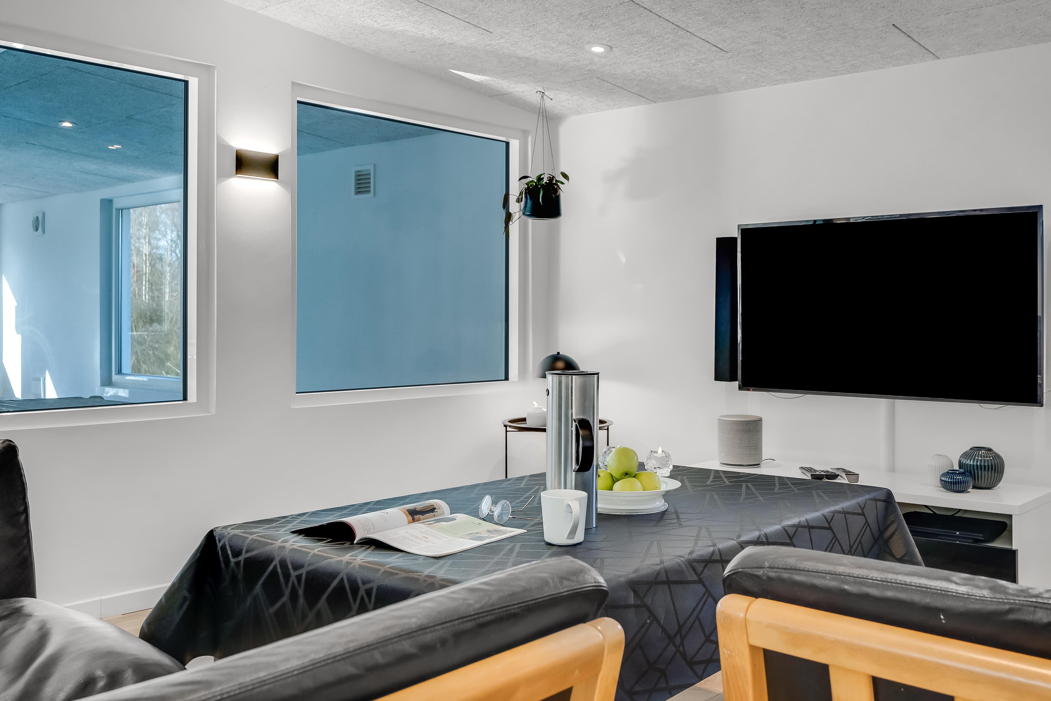 Die Küche des Hauses ist komplett mit allen notwendigen Geräten ausgestattet, darunter Mikrowelle, Backofen, Cerankochfeld, Geschirrspüler, Kühl- und Gefrierschrank mit einem Fassungsvermögen von 60 Litern. So können Sie ganz einfach köstliche Mahlzeiten für Ihre Familie und Freunde zubereiten. Nach einem gemütlichen Essen können Sie die gemeinsame Zeit im Wohnzimmer genießen. Das Wohnzimmer ist mit einem Fernseher ausgestattet, auf dem Sie sowohl dänisches, als auch deutsches Fernsehen empfangen können. Außerdem stehen ein DVD- und ein CD-Player zur Verfügung. Für Spielebegeisterte gibt es eine Playstation 3 mit passenden Spielen, sodass für jeden etwas dabei ist.