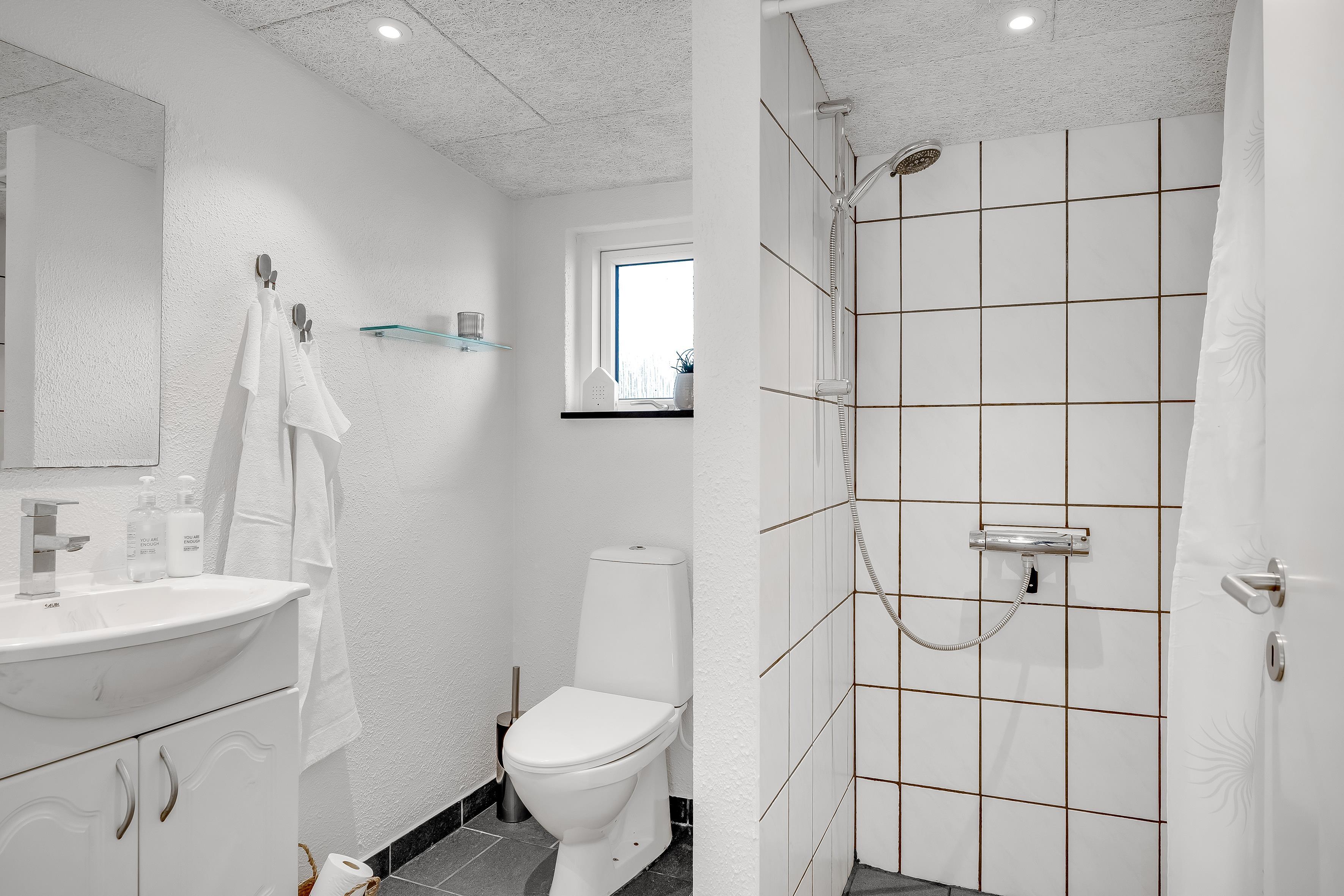 Das moderne Badezimmer ist mit Toilette, Dusche und Fußbodenheizung ausgestattet und sorgt so auch an den kältesten Tagen für ein angenehmes Wohnklima.