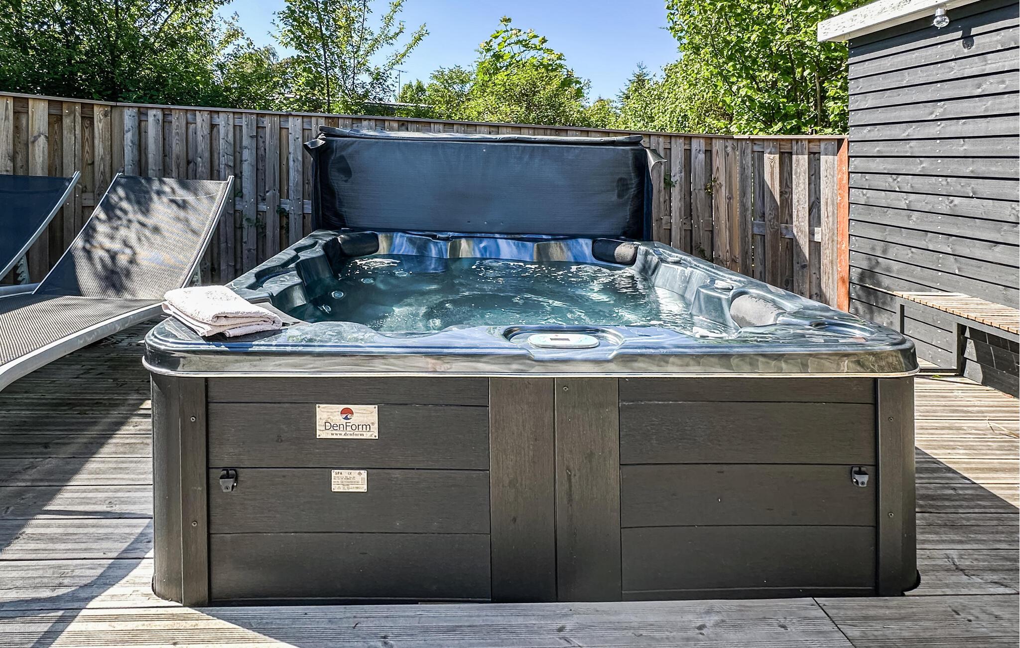 Entspannen Sie in diesem klassischen Ferienhaus mit Kamin und Wellnessbereich auf der Terrasse.