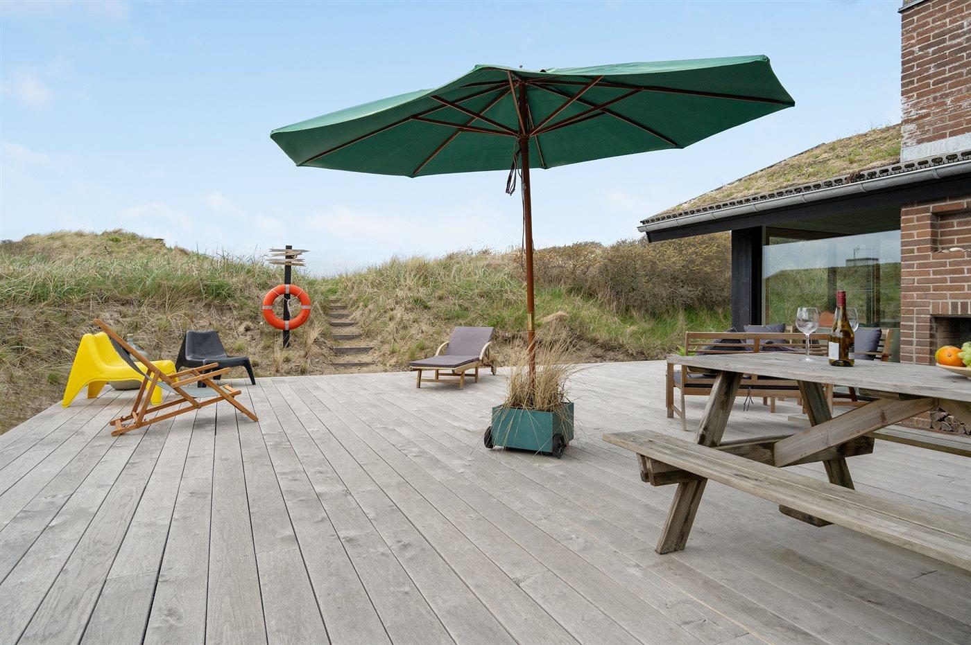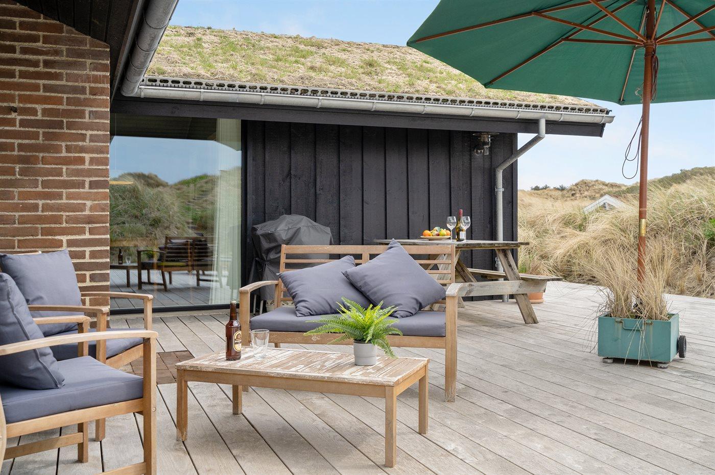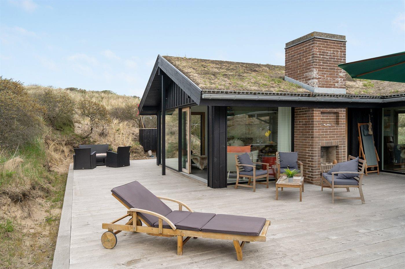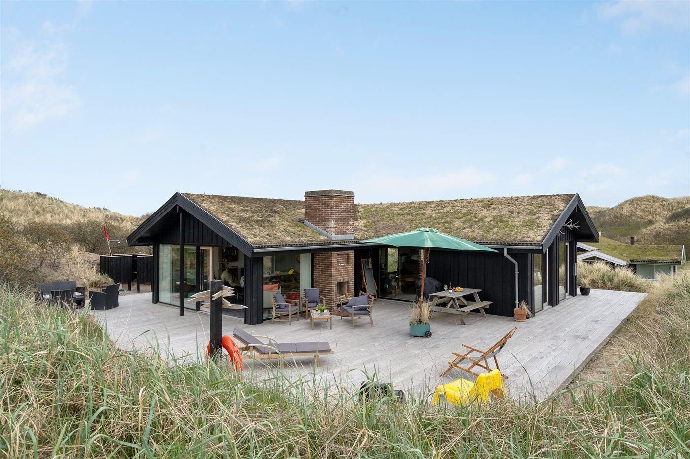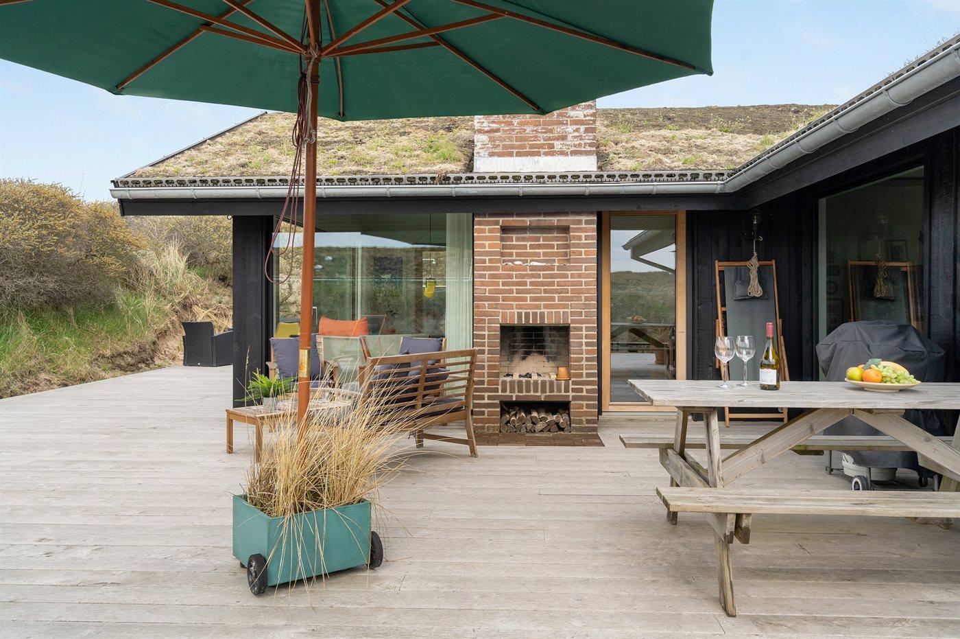 Die Ferienunterkunft liegt auf einem 6000 m² großen Dünengrundstück. Die Entfernung zum Meer beträgt 140 m. Die nächste Einkaufsmöglichkeit liegt 1900 m entfernt. Es steht ein offenes Terrassenareal zur Verfügung. Außendusche. An Sommerabenden sorgt der Außenkamin für eine gemütliche Atmosphäre. Es steht ein Grill zur Verfügung. Parkplatz auf dem Grundstück.