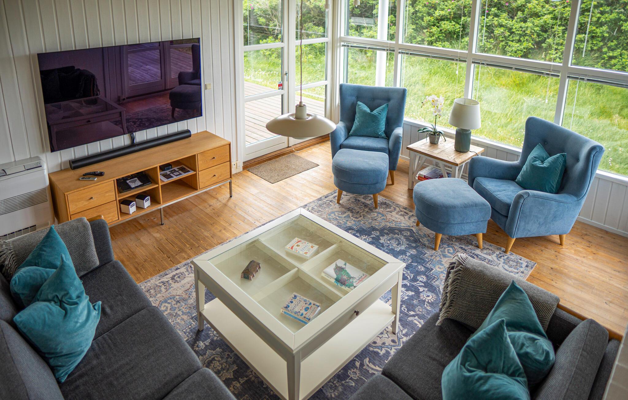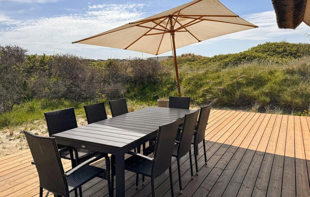 Willkommen in dem fantastisch gelegenen und geräumigen Haus, das Sie nur wenige Schritte vom Meer entfernt auf einem hügeligen Dünengrundstück begrüßt und den idealen Rahmen für einen erholsamen Urlaub mit der ganzen Familie bietet. Genießen Sie in den geschmackvoll möblierten Räumen die gemeinsame Zeit und den schönen Blick ins Freie, sei es bei den gemeinsamen Mahlzeiten, beim Planschen im Pool oder beim Entspannen in der gemütlichen Sitzgruppe.