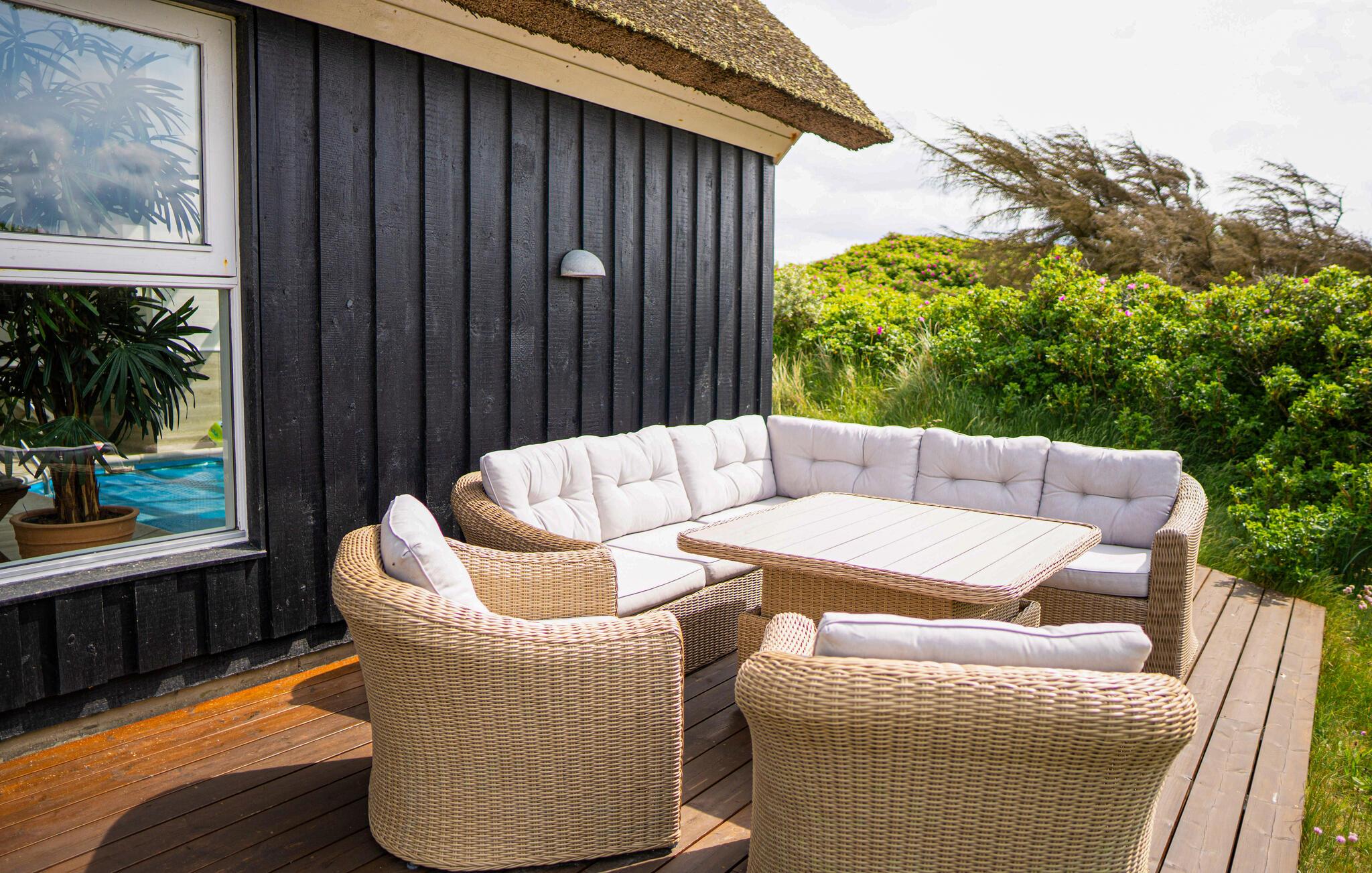Erleben Sie erholsame Tage in diesem gemütlichen Ferienhaus mit Innenpool und Panoramablick nahe dem Meer in Saltum.