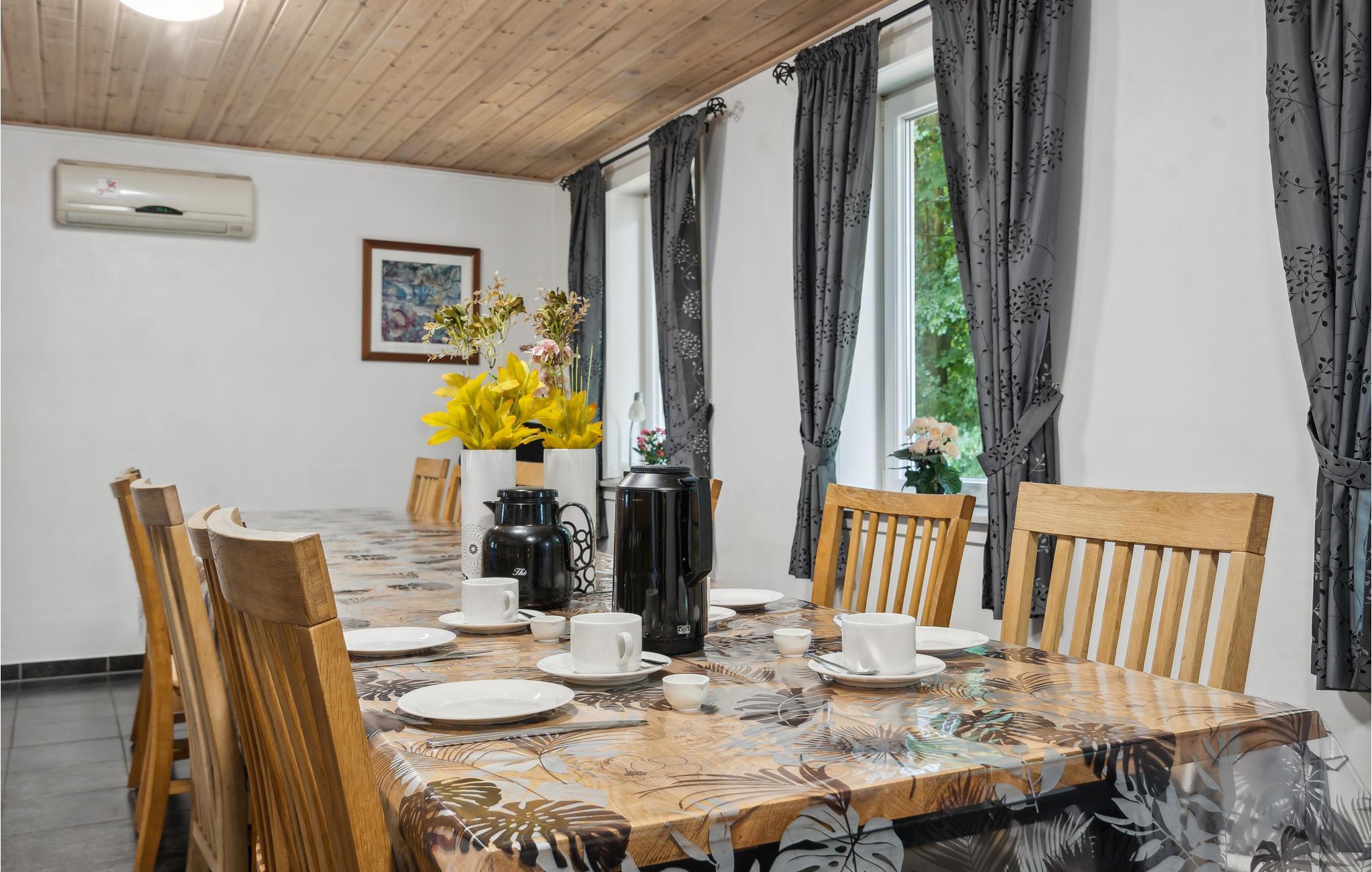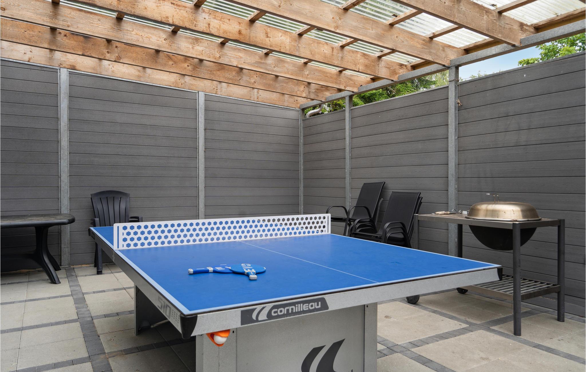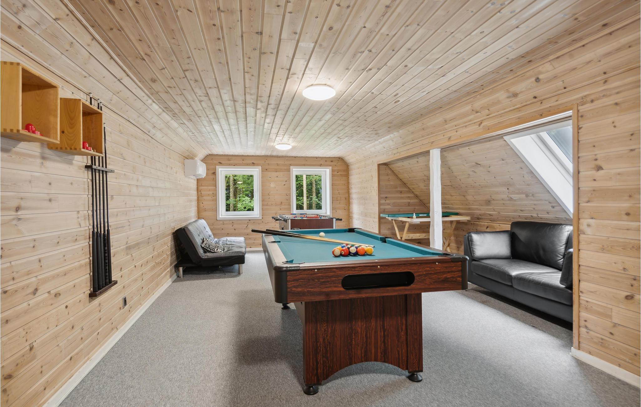 Das Ferienhaus verfügt über einen Kaminofen, der mit Holzpellets beheizt wird und so zu niedrigeren Heizkosten beiträgt. Im Spielraum haben Sie Pooltisch, Airhockey und Tischfußball. Zum Haus gehört auch ein geschlossener, teilweise überdachter Innenhof mit Tischtennis und anderen Spielen.