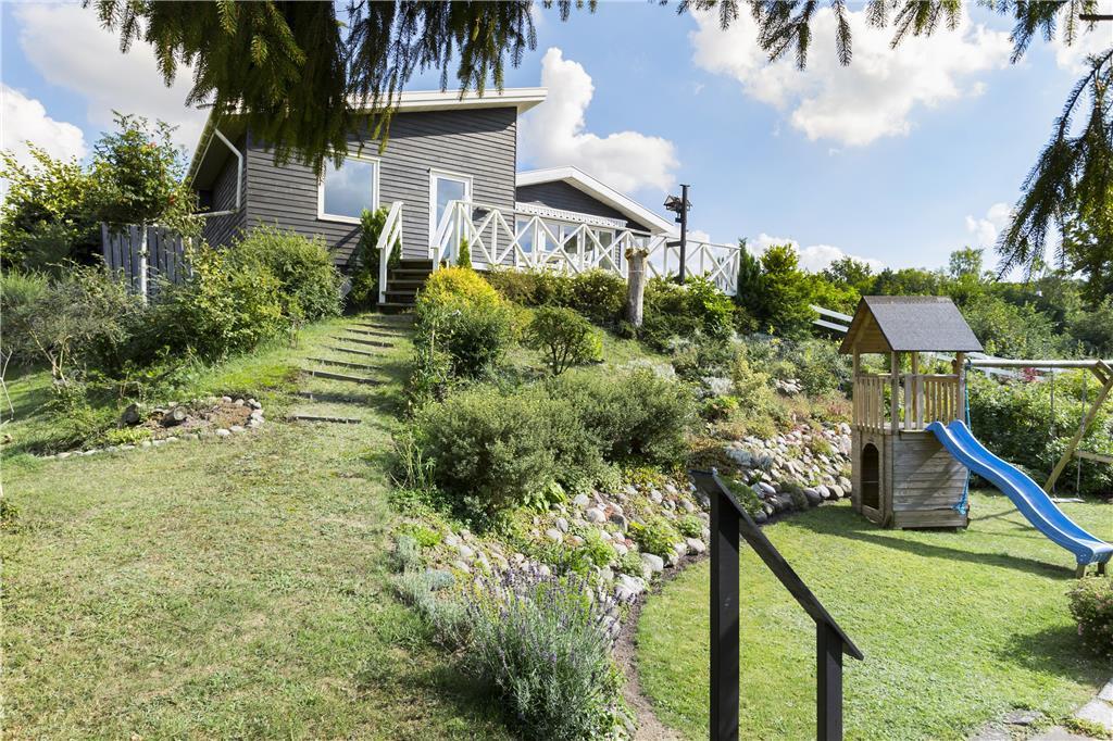 Das Ferienhaus verfügt über einen hellen Wohnbereich, hervorragend geeignet zum Entspannen, z. B. bei einem guten Buch oder einem Glas Wein. Außerdem über eine offene Küche mit großem Essbereich. Kinderbesteck, Kinderhochstuhl sowie ein Hocker sind vorhanden. In dem einen der beiden Schlafzimmer finden Sie ein Doppelbett, in dem anderen ein Schlafsofa für zwei Personen und im Anbau ein Etagenbett. Das gepflegte Bad ist mit einer Dusche ausgestattet. Die Terrasse ist so aufgeteilt, dass Sie die Sonne von morgens bis abends genießen können. Von dort aus überblicken Sie den herrlichen Garten, der für Kinder mit einem Kletterturm, einer Rutsche und einer Schaukel ausgestattet ist. Freuen Sie sich außerdem auf einen Aufenthalt in die Außensauna.