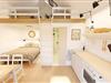 I hytten, vil du med det samme få følelsen af at være velkommen, alt er lyst, nyt, lækkert og særdeles indbydende. Du vil hurtigt få skuldrene ned og mærke, at det endelig er tid til ferie. I den dejlige stue, der er placeret i forbindelse med det åbne køkken, kan I samles omkring spisebordet til et brætspil eller en god frokost. Hvis I rejser som en gruppe, er der i alt 5 hytter til rådighed.