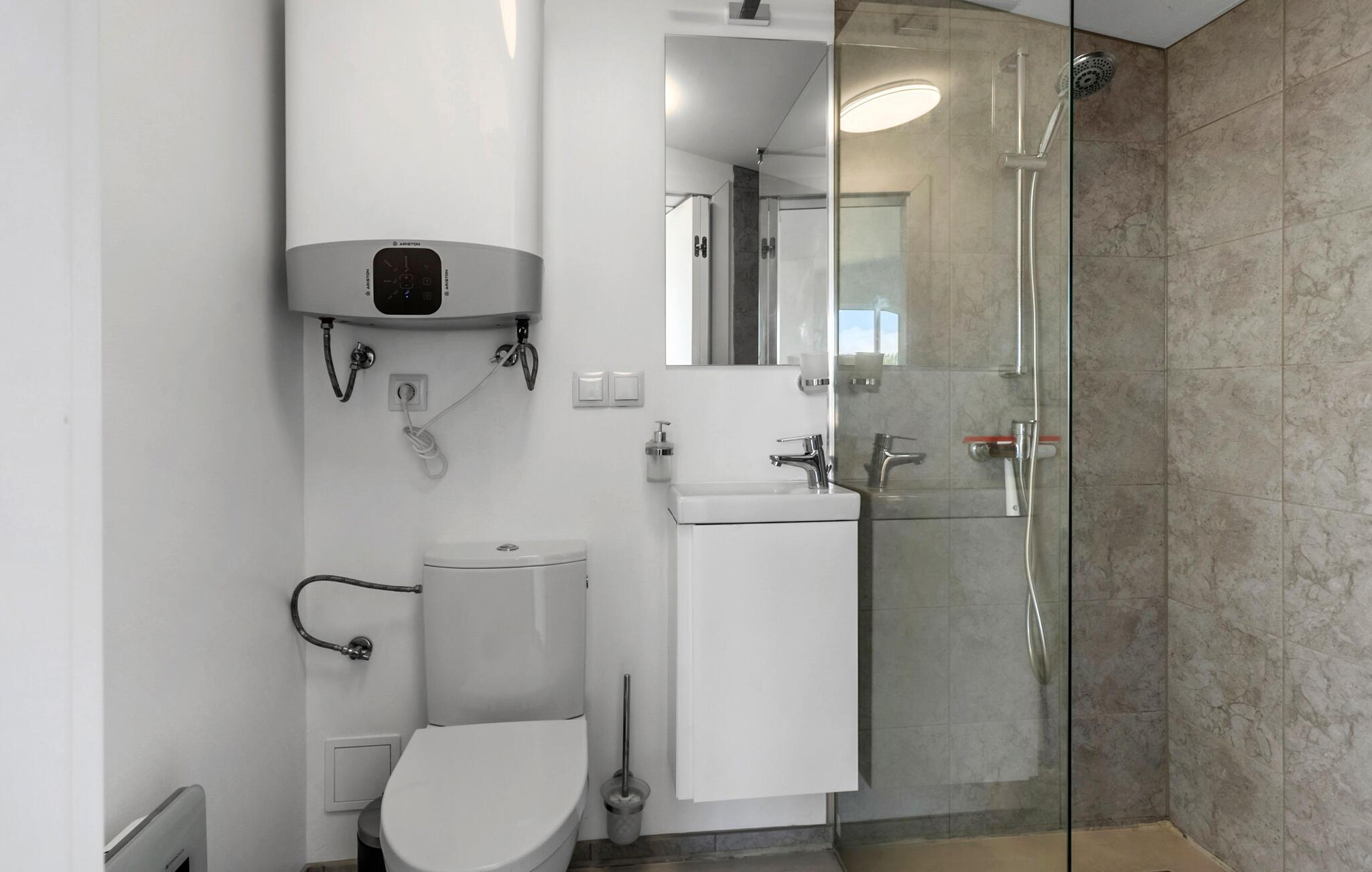 Badezimmer (nr. 1) - WC. Warmes und kaltes Wasser. Dusche