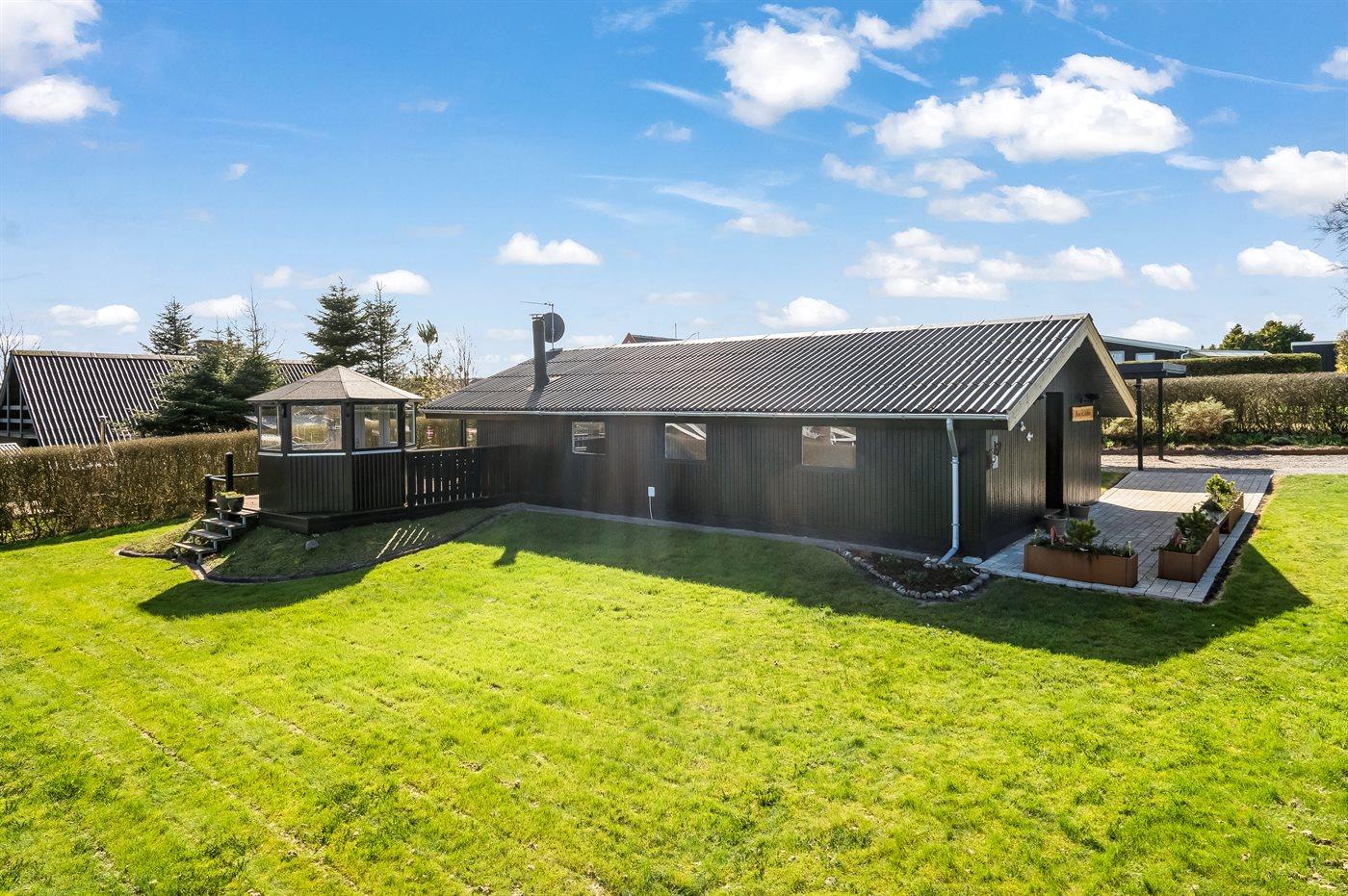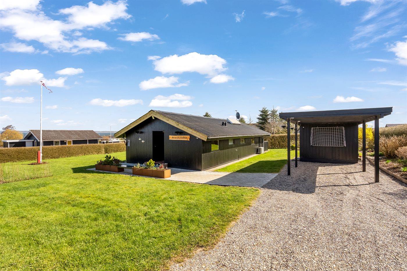 Helles und einladendes Ferienhaus mit herrlicher Lage in der Nähe des Limfjords mit Blick auf das Wasser. Das Ferienhaus ist praktisch und modern eingerichtet für einen guten Ferienaufenthalt, und im Garten gibt es sowohl Möglichkeiten zum Spielen als auch zum Genießen des Urlaubs in Ruhe und Frieden.