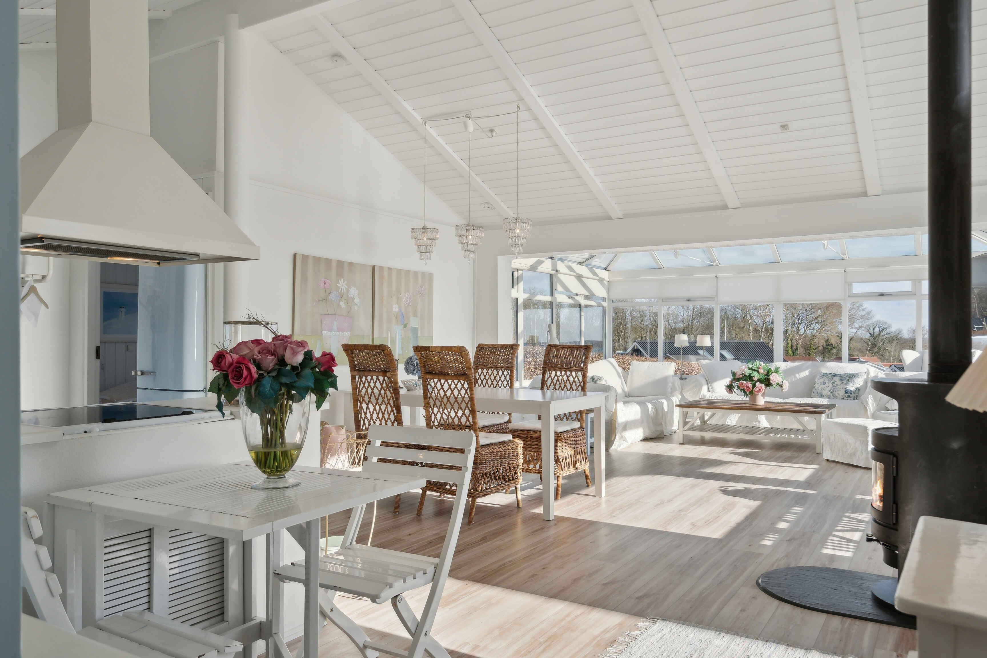 Dieses Ferienhaus ist die ideale Wahl für einen Urlaub, der Komfort und Natur verbindet. Das Haus ist 98 m² groß und bietet mit drei Schlafzimmern Platz für bis zu sechs Personen. Vom Haus aus genießen Sie einen beeindruckenden Meerblick, der sowohl von der Terrasse als auch aus den hellen Wohnräumen sichtbar ist. Die Lage bietet direkten Zugang zur wunderschönen Natur der Umgebung. Das Interieur ist modern und funktional. Das Wohnzimmer ist mit einem Kaminofen und Chromecast ausgestattet und eignet sich perfekt für entspannte Abende. Internet sorgt für Unterhaltung und Arbeitsmöglichkeiten, wenn nötig. Die Küche ist voll ausgestattet und Teil eines offenen Wohnbereichs, der Familie und Freunde zusammenbringt. Von hier aus haben Sie ebenfalls einen Blick aufs Wasser. Nur 400 Meter entfernt befindet sich ein kinderfreundlicher Strand mit flachem Wasser und guten Möglichkeiten für Strandaktivitäten. Der Strand ist ideal für Familien mit kleinen Kindern. Die Gegend ist bekannt für ihre malerische Natur und Küstenwege. Wanderungen und Radtouren entlang des Lillebælt bieten einzigartige Erlebnisse und herrliche Ausblicke. Lokale Städte mit Einkaufsmöglichkeiten, Restaurants und Spezialitäten sind in kurzer Entfernung erreichbar. Es ist einfach, Entspannung mit spannenden Ausflügen zu verbinden. Dieses Ferienhaus ist die perfekte Wahl für Familien und kleinere Gruppen, die einen ruhigen Urlaub mit Komfort und Nähe zu Natur und Aktivitäten suchen. Achtung: Wird nicht für gewerbliche Nutzung vermietet.