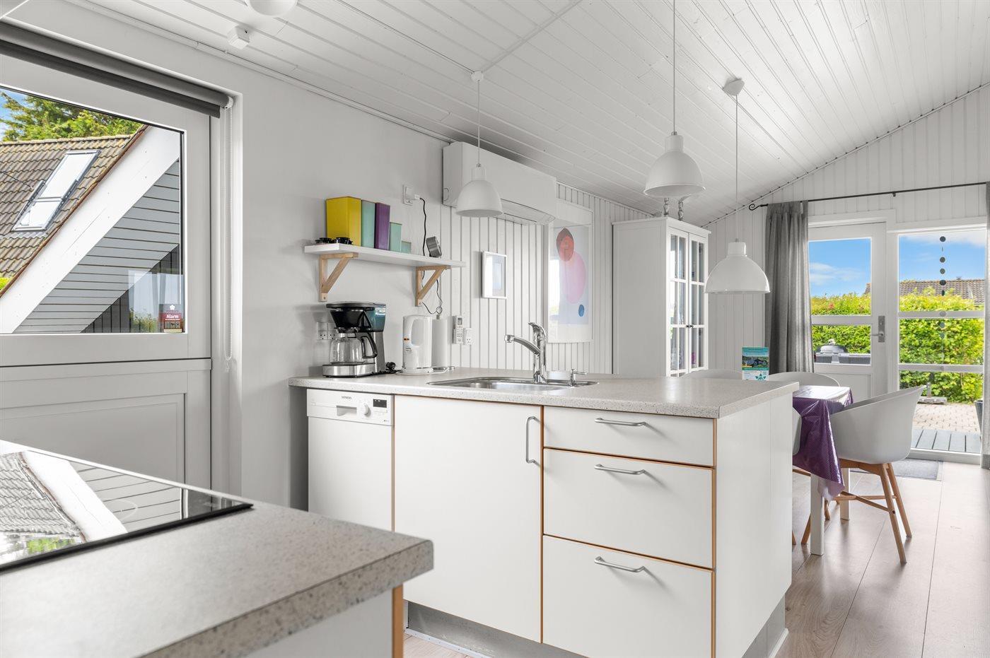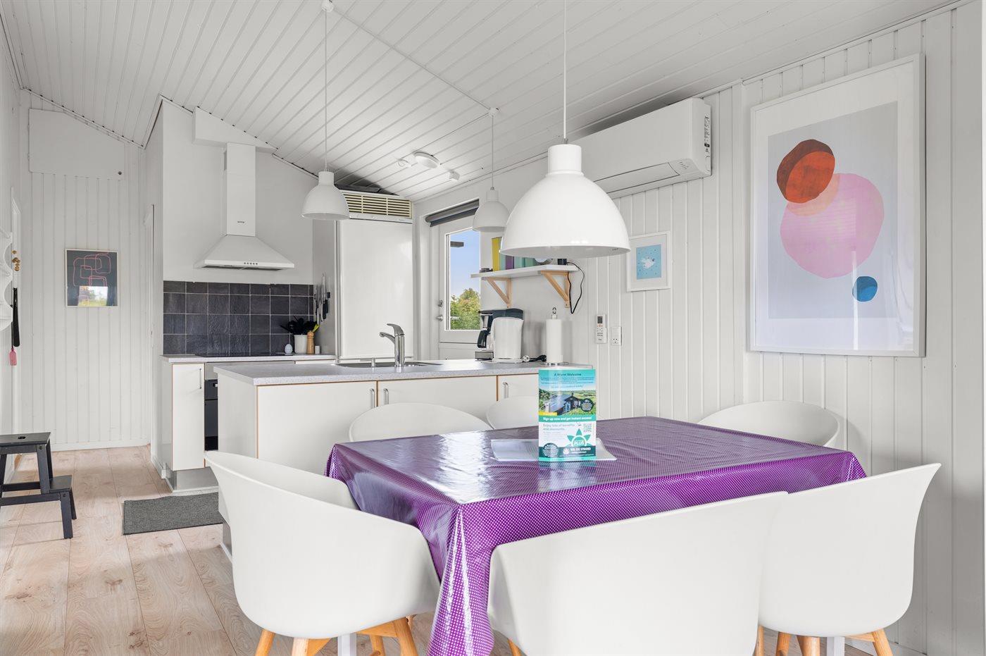 Dieses schöne Ferienhaus liegt im beliebten Feriengebiet Skåstrup Strand. Das Haus ist hell und freundlich eingerichtet und es gibt mehrere Terrassen, von denen die eine, die sich an der Vorderseite des Hauses befindet, teilweise überdacht ist.