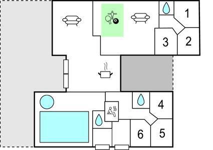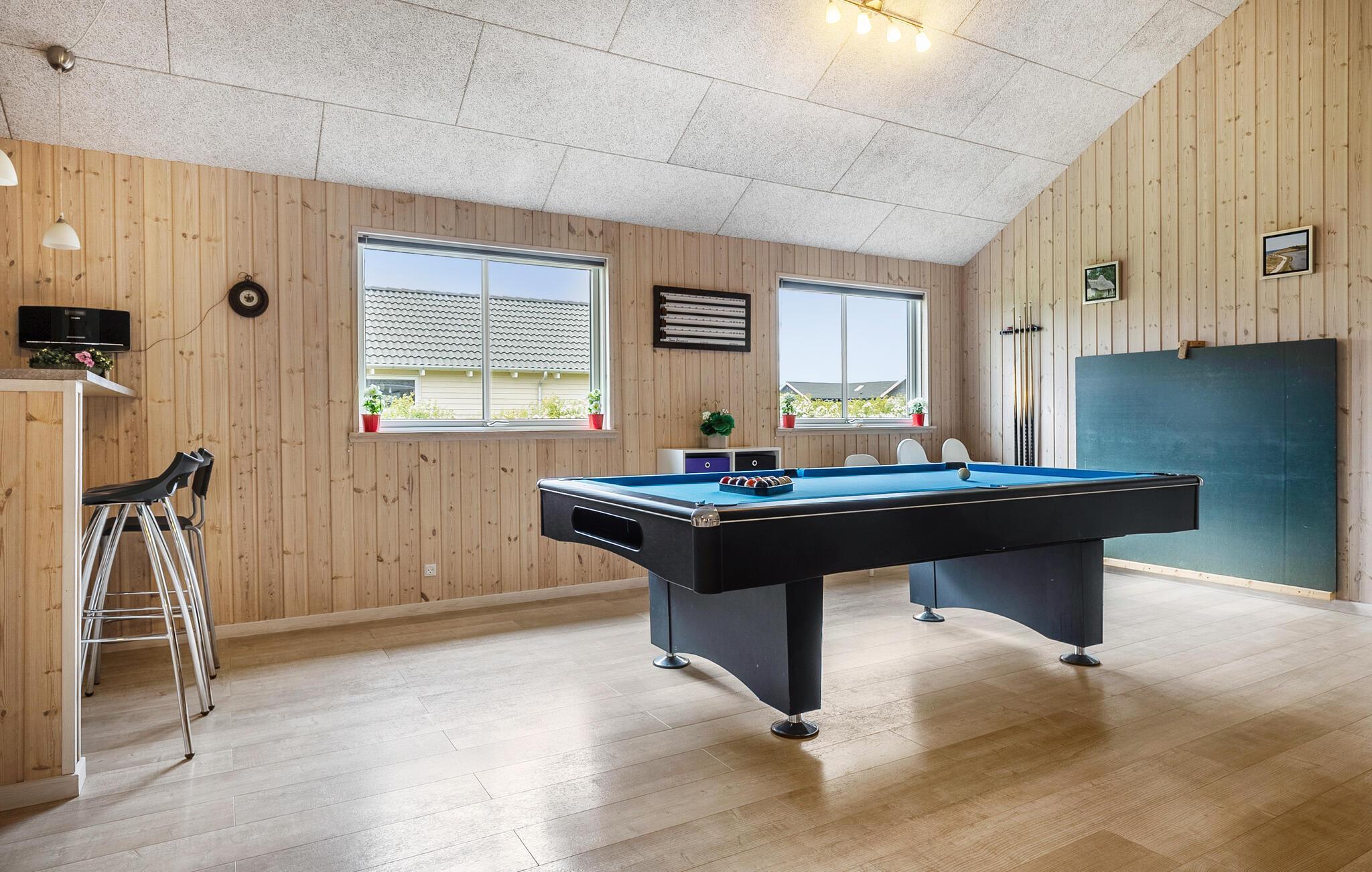 In diesem Ferienhaus erleben Sie besondere Ferien. Es ist mit komfortablen, modernen Möbeln ausgestattet, hier relaxen Sie und machen es sich gemütlich. Im einladenden Aktivitätsraum können Sie Pool, Tischtennis, Darts und Tischfußball spielen. Nehmen Sie hier an der Bar eine Erfrischung zu sich, auch ein Kühlschrank ist vorhanden. Beim Pool haben Sie auch einen Whirlpool für 6 und von diesem Raum kommen Sie auch in die Sauna. Sie können also in vollen Zügen Wellness genießen. Auf der herrlichen Terrasse stehen behagliche Gartenmöbel, hier entspannen Sie wirklich an schönen, langen und lauen Sommertagen. In Bogense erleben Sie am Hafen und an der Marina ein maritimes Flair.Die Vorauszahlung für die Verbrauchskosten und die Endreinigung wird in bar im Haus beglichen. Bettwäsche, Handtücher, Kinderstuhl und -bett kann im lokalen Servicebüro gemietet werden.
