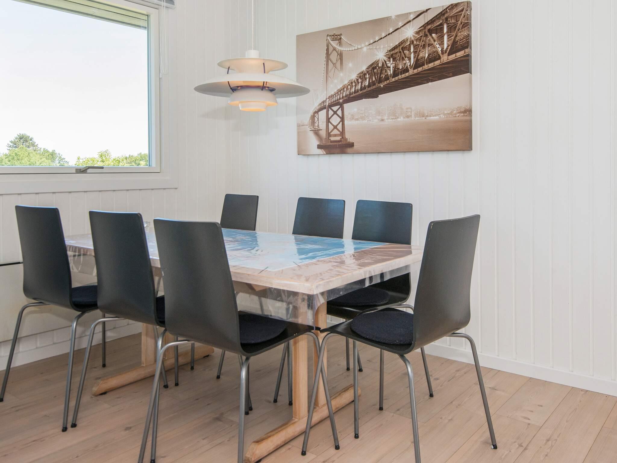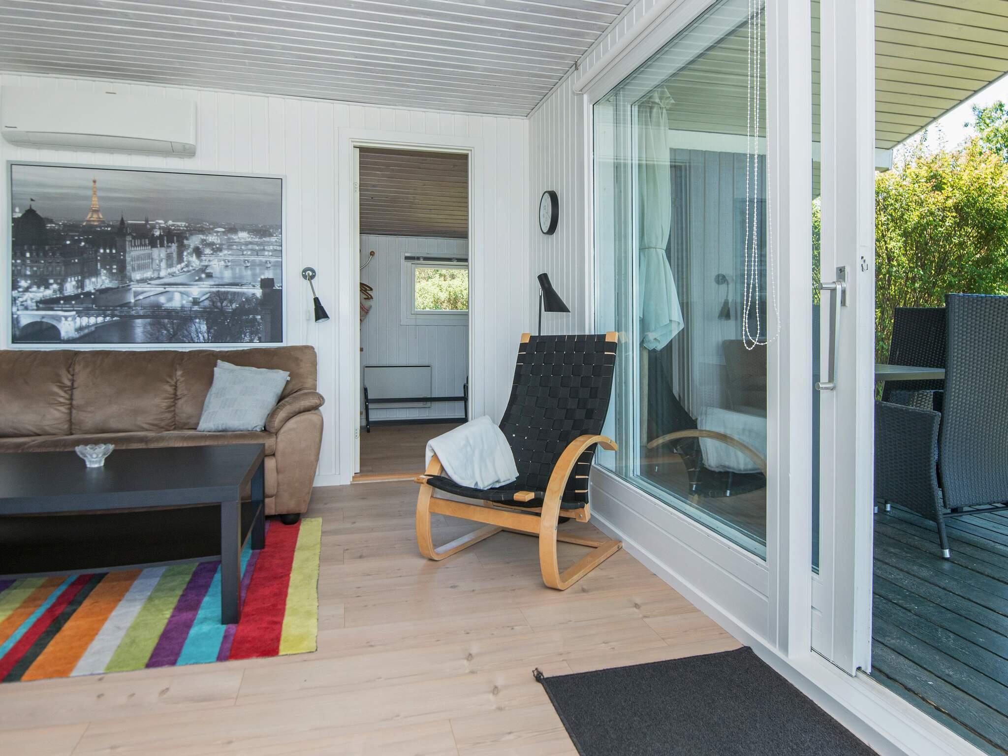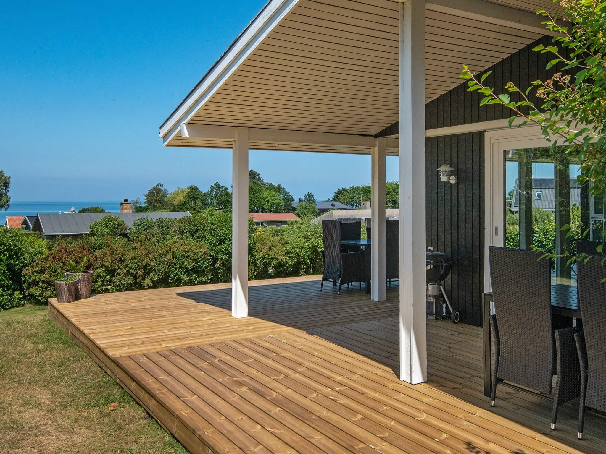 Erhöht gelegenes Ferienhaus mit einzigartigem Meerblick von der Küche sowie dem Wohn- und Schlafzimmer! Das Haus hat eine gut ausgestattete Küche mit Wohn- und Essbereich im direkten Anschluss daran. Großflächiges Naturgrundstück das zum Spielen und Ballspielen einlädt. Fast um das gesamte Haus herum verteilen sich eine 60 m² große offene sowie eine 50 m² große, geschlossene Terrassenfläche. Von der Terrasse aus haben Sie eine fantastische Aussicht in die Umgebung sowie Blick zum Strandufer und einen einzigartigen Meerblick mit Sonnenuntergang. Der Strand liegt ca. 2 Minuten zu Fuß entfernt und ist ein guter Badestrand. Ein Lebensmittelgeschäft findet man auf dem Campingplatz, ca. 300 m vom Haus entfernt.