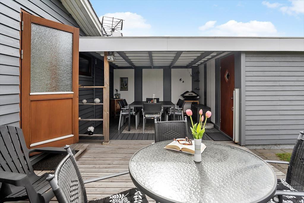 Die Terrasse ist das Herzstück des Lebens im Freien in diesem Ferienhaus – sie strahlt Sommerfreude und dänisches Feriengefühl aus. Der Duft von Gegrilltem, das Lachen deiner Liebsten und die Ruhe des Gartens schaffen eine Atmosphäre, die zum Verweilen einlädt. Spüre das Miteinander und die entspannte Stimmung, wenn die Sonne langsam untergeht und der Abend sich über den Garten legt.