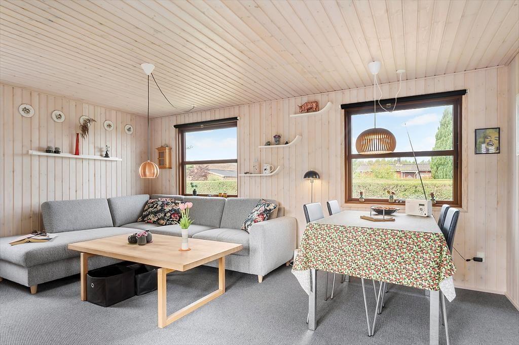 In diesem charmanten, klassischen Ferienhaus spürst du sofort die gemütliche und einladende Atmosphäre – der perfekte Ort, um einen erholsamen Urlaub miteinander zu genießen. Die großen Fenster im Wohnbereich lassen viel Tageslicht herein und holen den Garten direkt ins Haus. Die hellen Holzwände im ganzen Haus unterstreichen das freundliche Sommerhausgefühl und schaffen den idealen Rahmen für unvergessliche Urlaubstage.