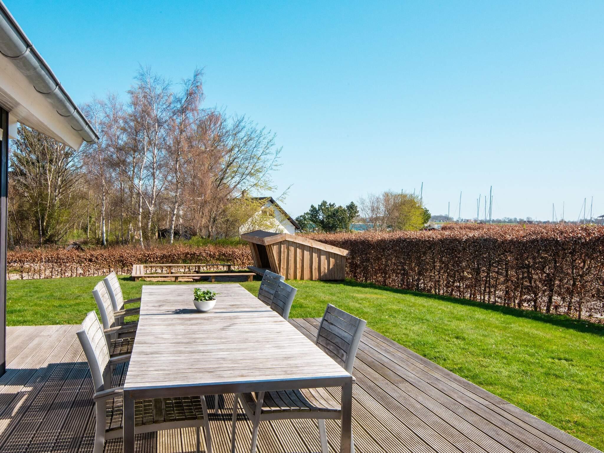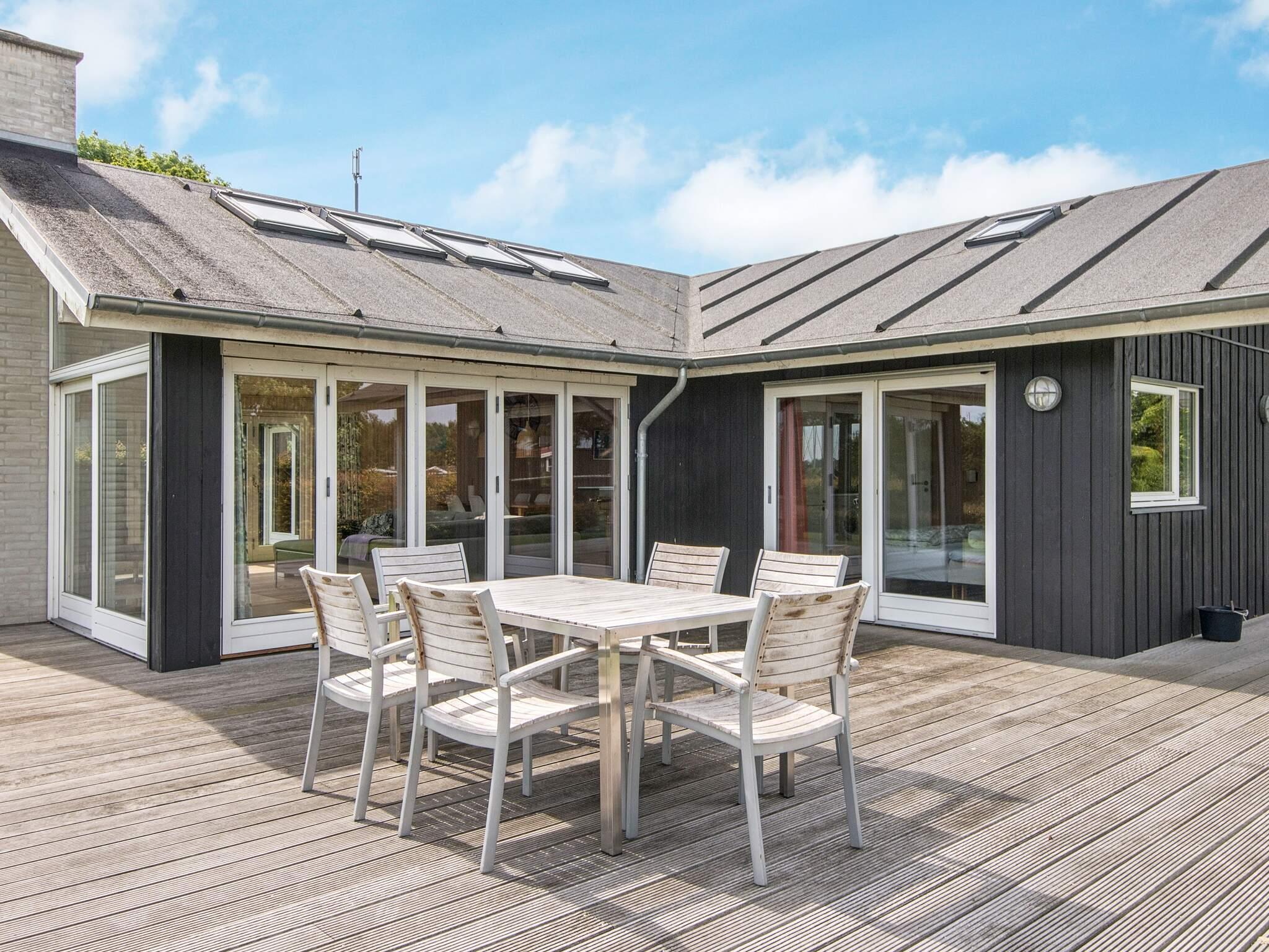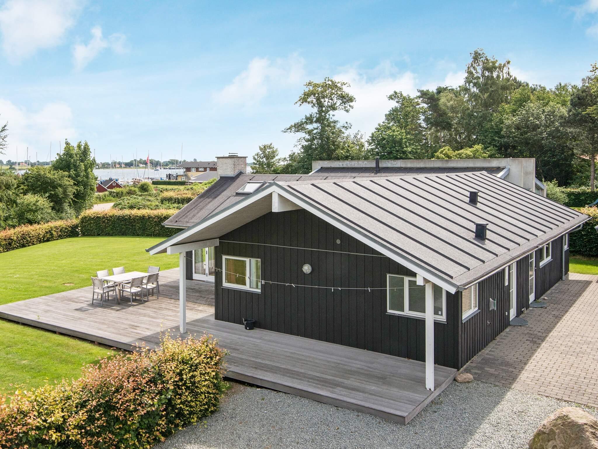 Das Ferienhaus steht auf einem 1250 m² großen Rasengrundstück, nur etwa 100 m von der Ostsee. Im Außenbereich findet man eine 120 m² große, offene Terrassenfläche sowie eine 25 m² große, überdachte Terrasse. Vom Hafen in Snaptun verkehren kleine Fähren hinaus zu den Inseln Hjarnø und Endelave, ideal für einen Tagesausflug.