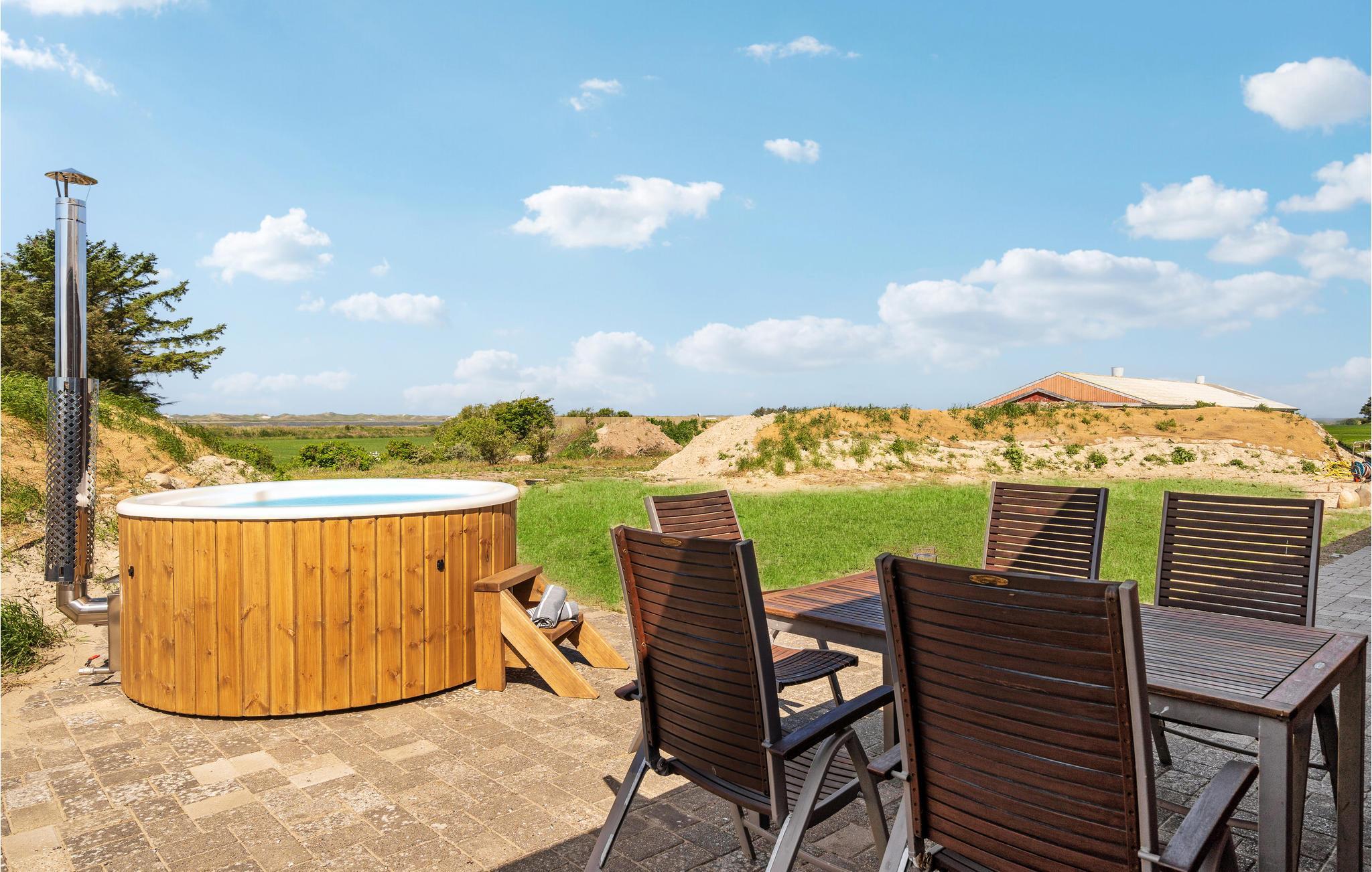 Großes, renoviertes Ferienhaus in ruhiger Lage nahe Sandstrand mit finnischem Holzbad und Sonnenterrasse in Westjütland.