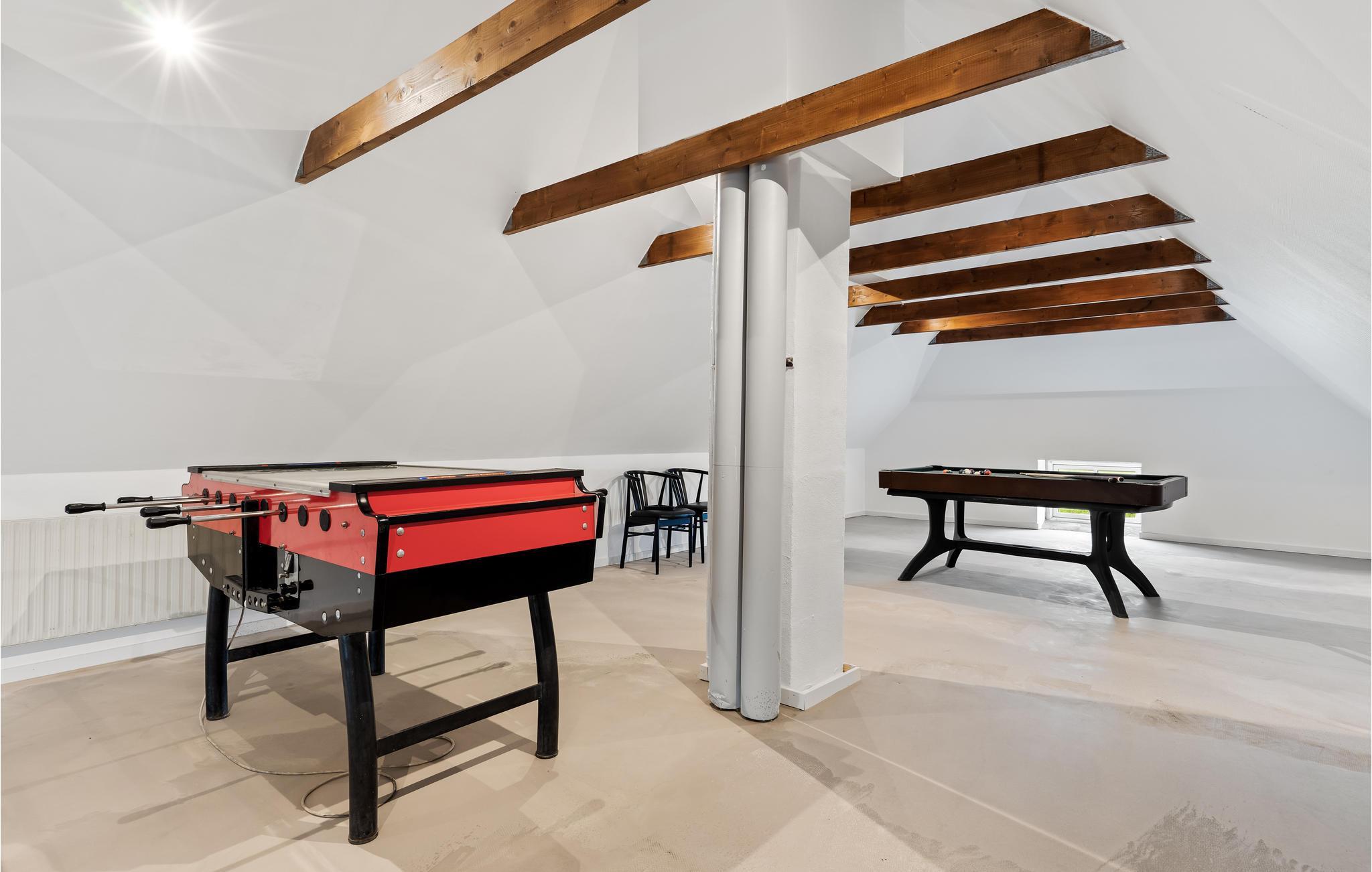 Möchten Sie sich im Urlaub mal so richtig verwöhnen lassen, dann können Sie mit großem Erfolg diesen modernen vierflügeligen Hof mit fliesenbelegtem Innenhof mieten. In einem Flügel im Haus finden Sie den großen Swimmingpool mit Gegenstromanlage und einen Whirlpool. Die Ihnen Badespaß und Entspannung versprechen. Hier sind auch eine Bar sowie eine große Sauna vorhanden, die Ihnen Unterhaltung beim Wellnessen versprechen. Die große, schöne Küche ist mit einem sehr geschmackvollen und gemütlichen Esszimmer mit gemauertem Kamin und Zugang zum Garten verbunden. Kommen Sie hier zusammen und schwingen zusammen die Kochlöffel oder legen einfach die Beine hoch. Im Fernsehraum im 1. Stock können Sie den schönen Blick auf die Landschaft genießen oder sich beim Billard spielen herausfordern. Der schöne Hof ist bestens für mehrere Familien geeignet und die Terrasse lädt Sie ein, gemeinsame Mahlzeiten und die Sonne zu genießen. Schauen Sie Ihren Kindern beim Beachvolleyball, Boccia und Fußball spielen zu und erfreuen sich an Ihrem Urlaub mit einer großen Gruppe.