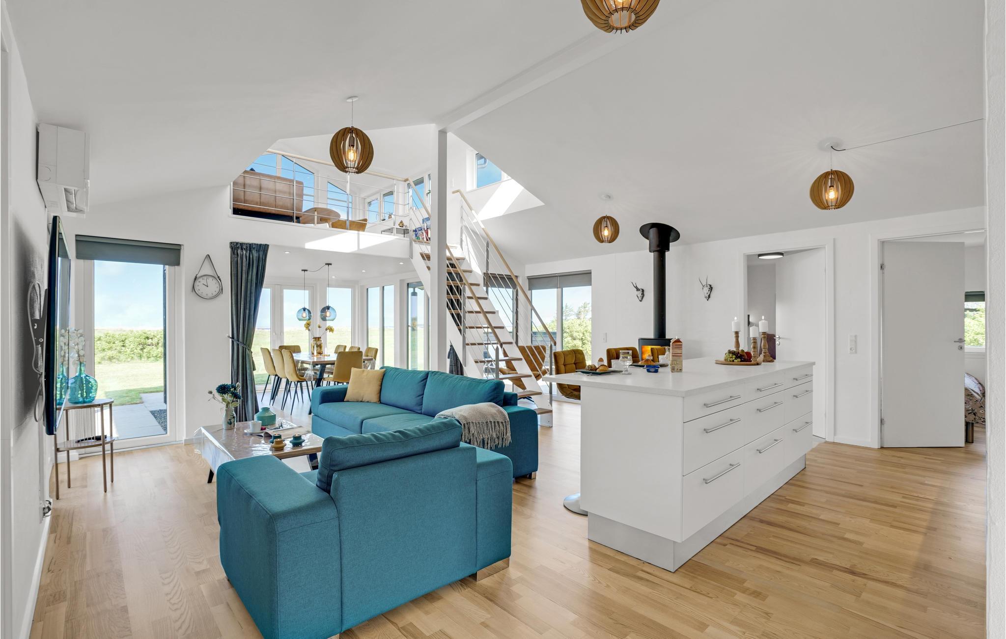 Kommen Sie mit Ihrer Familie oder Freunden in dieses schöne und stilvolle Ferienhaus mit Panoramablick in Westjütland. In den geräumigen Zimmern mit der hellen Holzverkleidung können Sie sich so richtig wohlfühlen. Bei der Einrichtung des Hauses wurde Wert auf Qualität und Design gelegt, sodass Sie sich im offenen und lichtdurchfluteten Wohnraum beim Kochen, Spielen und Filmschauen nur noch wohlfühlen brauchen. Im Garten können die Kinder umhertollen und sich austoben, bis Sie zum gemeinsamen Essen auf der Terrasse rufen. Entspannen Sie sich nach erlebnisreichen Tagen und genießen Sie das schöne Wetter mit einem sehenswerten Sonnenuntergang.