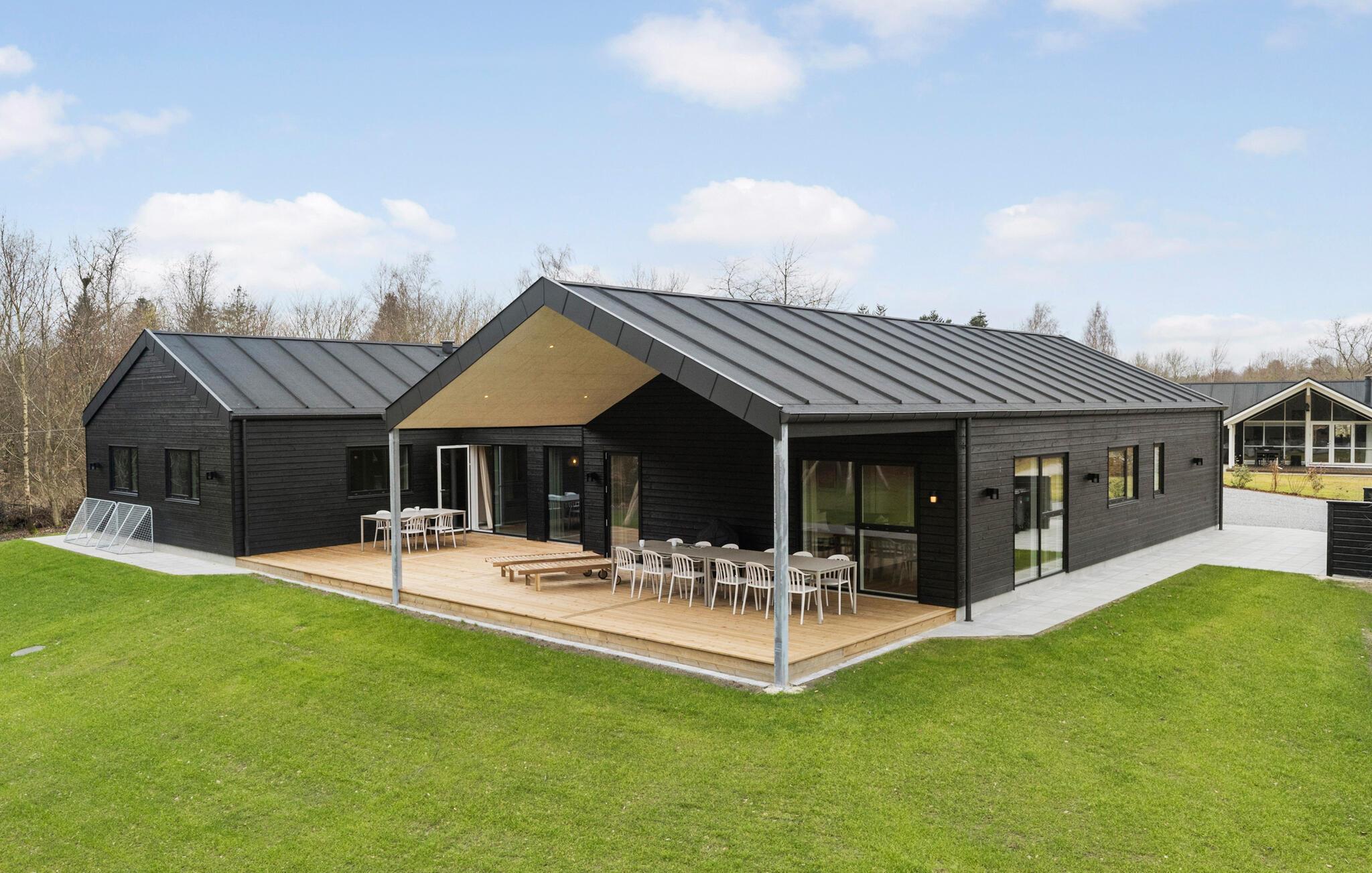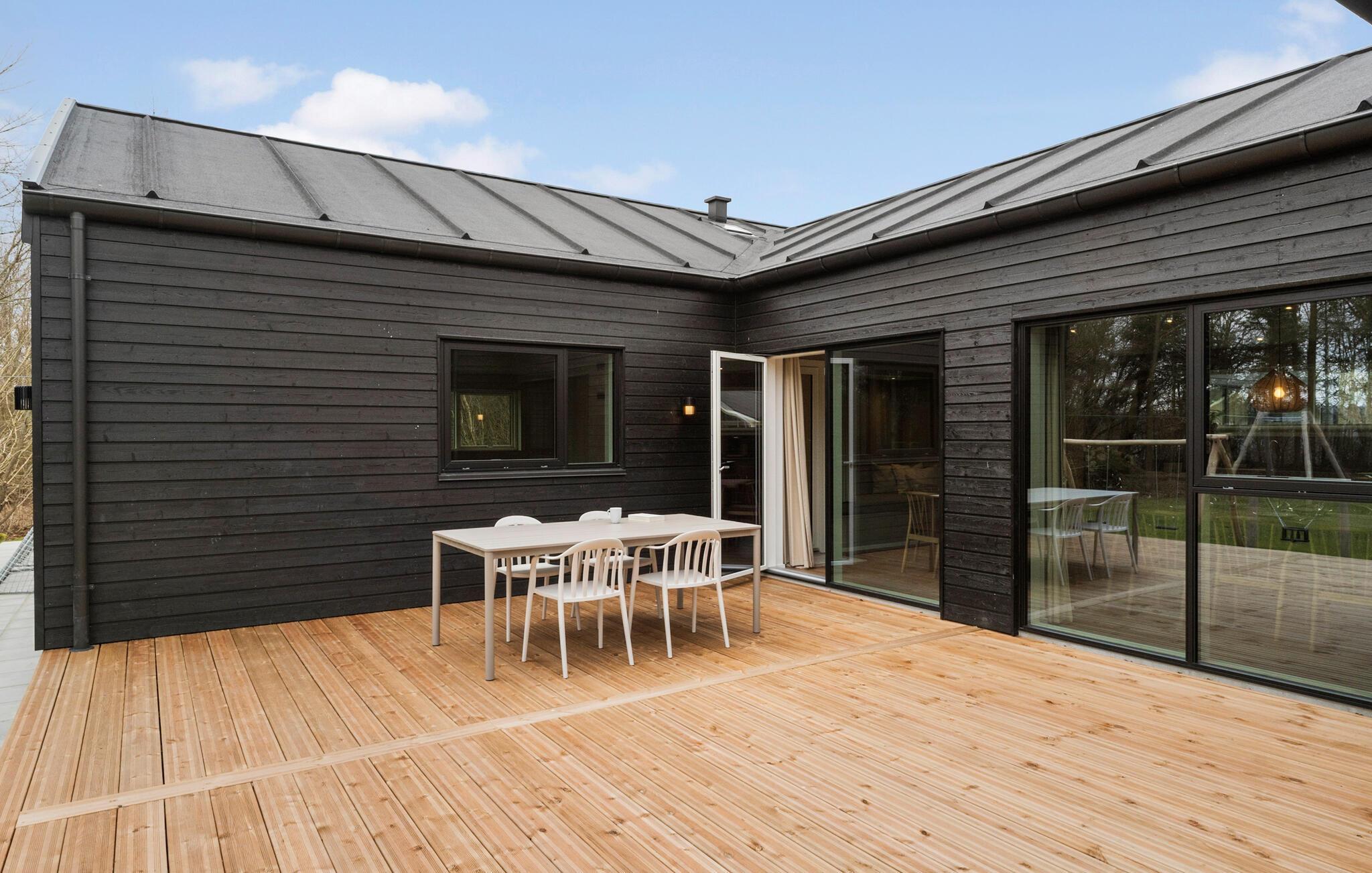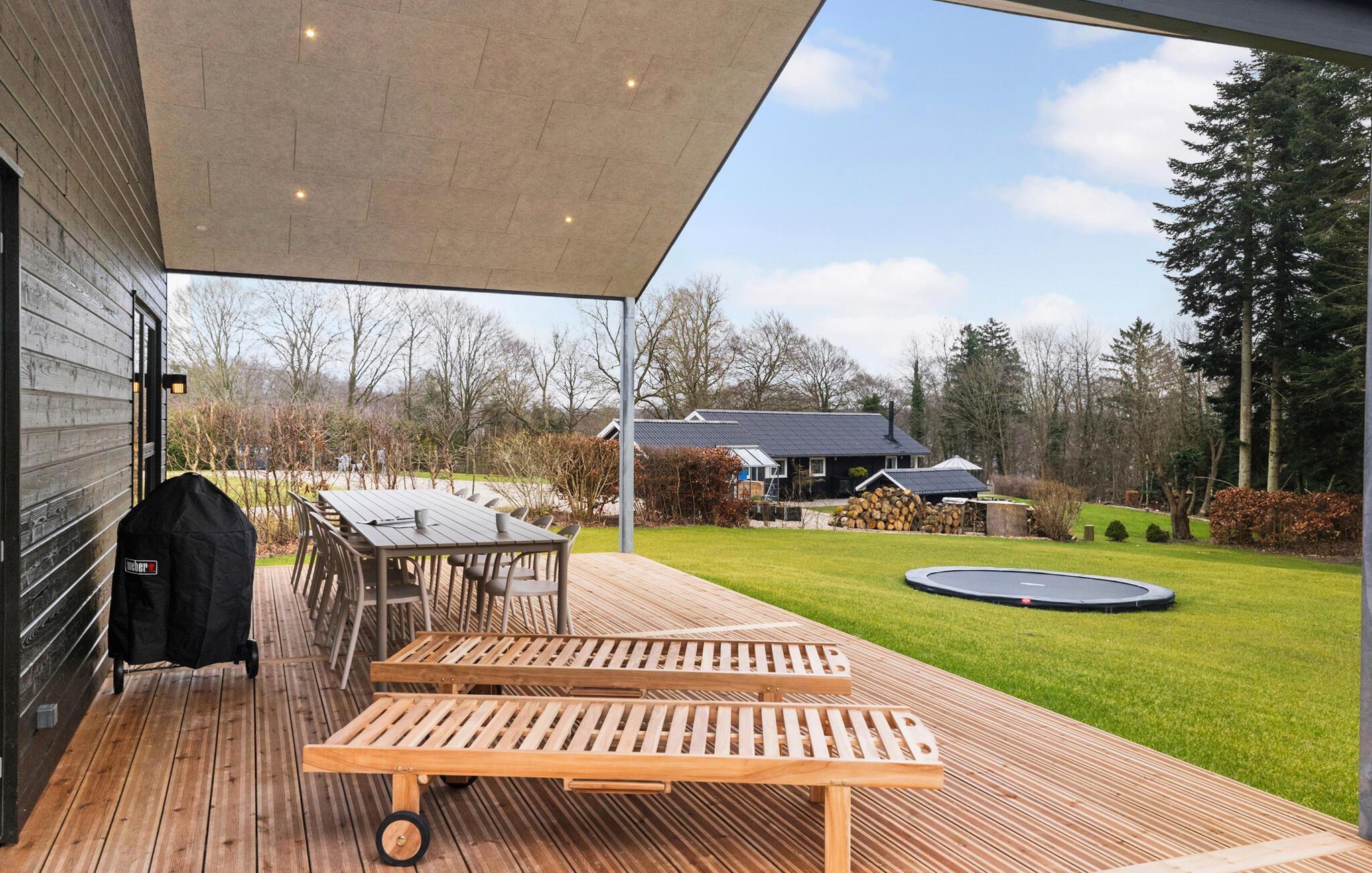 Genießen Sie Luxus und Erholung in diesem großen Ferienhaus mit Pool, Sauna und großem Garten in Stinesminde, Dänemark.