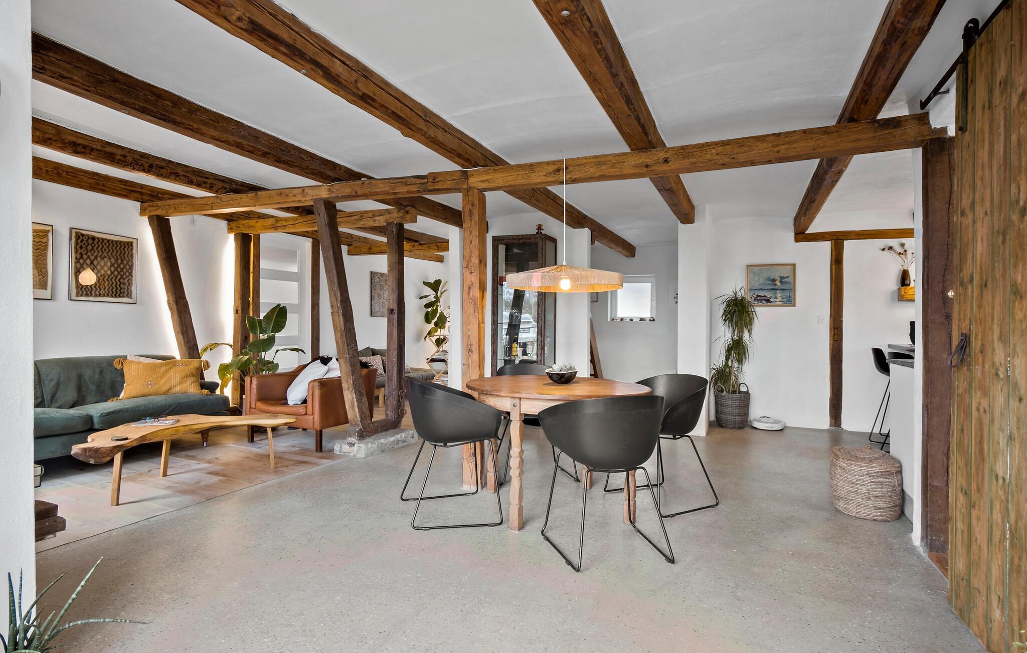 Diese liebevoll renovierte Wohnung begrüßt Sie mit einem stilvollen Ambiente aus sichtbaren Holzbalken, sanften Naturtönen und einer geschmackvollen Einrichtung. Bereiten Sie in der offenen Küche Ihre Lieblingsgerichte zu und genießen Sie diese am einladenden Esstisch. Machen Sie es sich auf dem Sofa mit einem guten Buch bequem, entspannen Sie bei einem Film oder verbringen Sie gesellige Abende bei einem Glas Wein und anregenden Gesprächen.