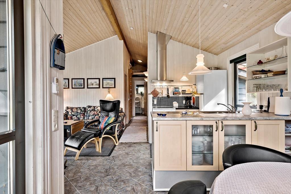 Dein Ferienhaus zählt zu den Mietobjekten, in denen du dich vom ersten Moment an heimisch fühlst. Die Räumlichkeiten bestechen mit einer komfortablen Möblierung und einer ansprechenden Atmosphäre. In klassischer Manier verwöhnt dich im Wohnraum ein gemütlich knisternder Kaminofen. Hinzu gesellen sich eine Polstersitzgruppe, ein Esstisch und eine offene Küche. Die Schlafnische des Wohnraums eignet sich hervorragend für ein Mittagsschläfchen und kann von deiner Familie des Nachts als Schlafgelegenheit genutzt werden. Die restlichen Schlafplätze verteilen sich auf zwei Schlafräume. Es sind ein Badezimmer und ein zusätzliches Gäste-WC vorhanden. Insgesamt verbringen in diesem Haus bis zu vier Personen gelungene Urlaubstage.