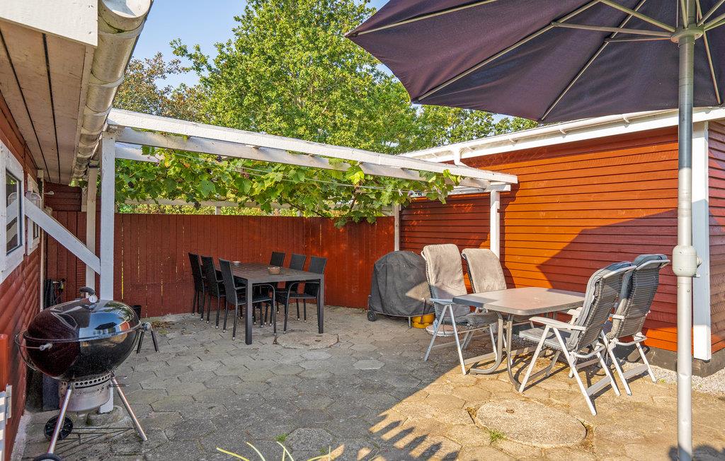 Gemütliches Ferienhaus nahe Strand mit Kaminofen und überdachter Terrasse für entspannte Urlaubstage.